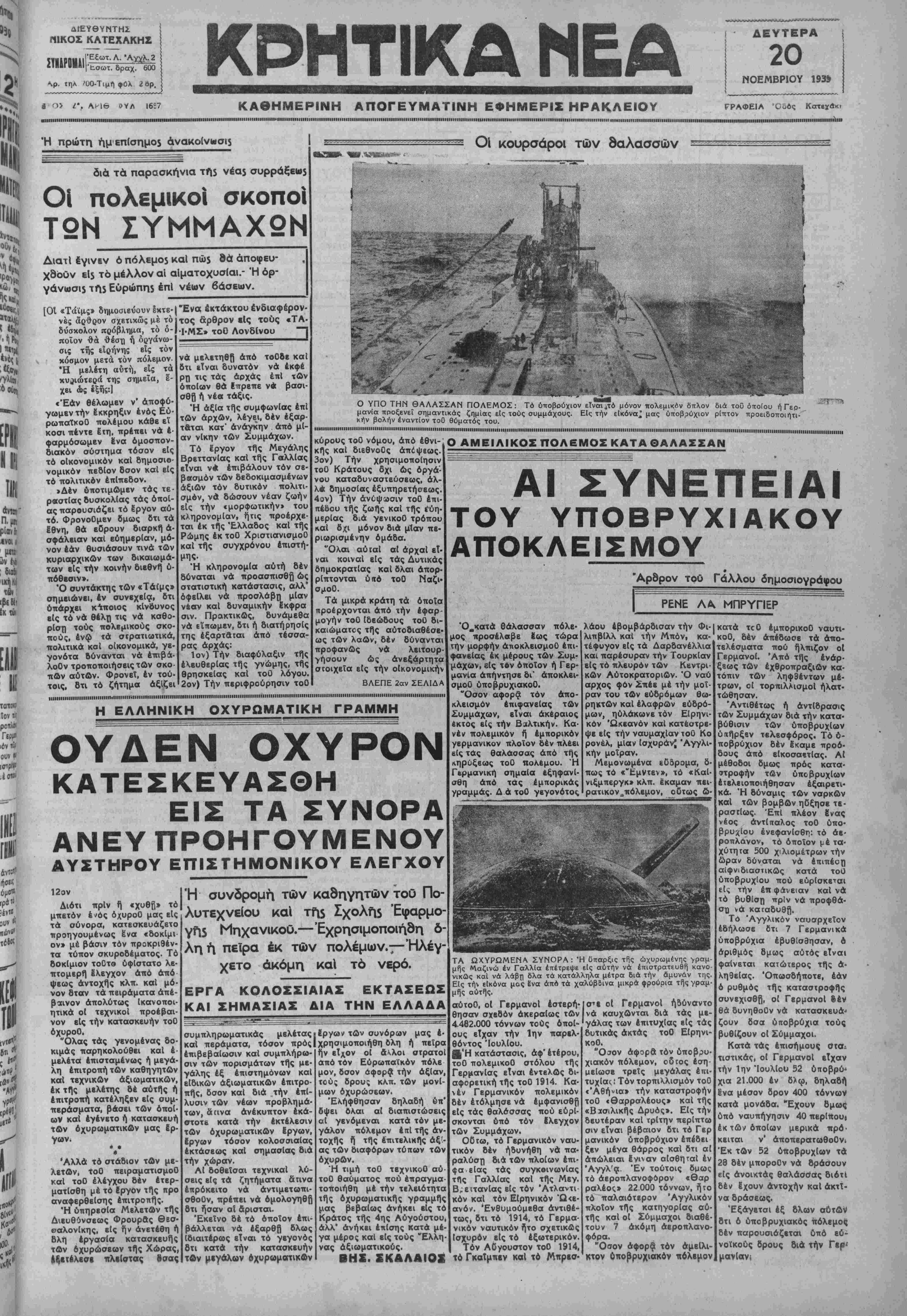 τά τήν διάρκειαν τής Γέρμα-] ΑΘΗΝΑΙ 20-11-39