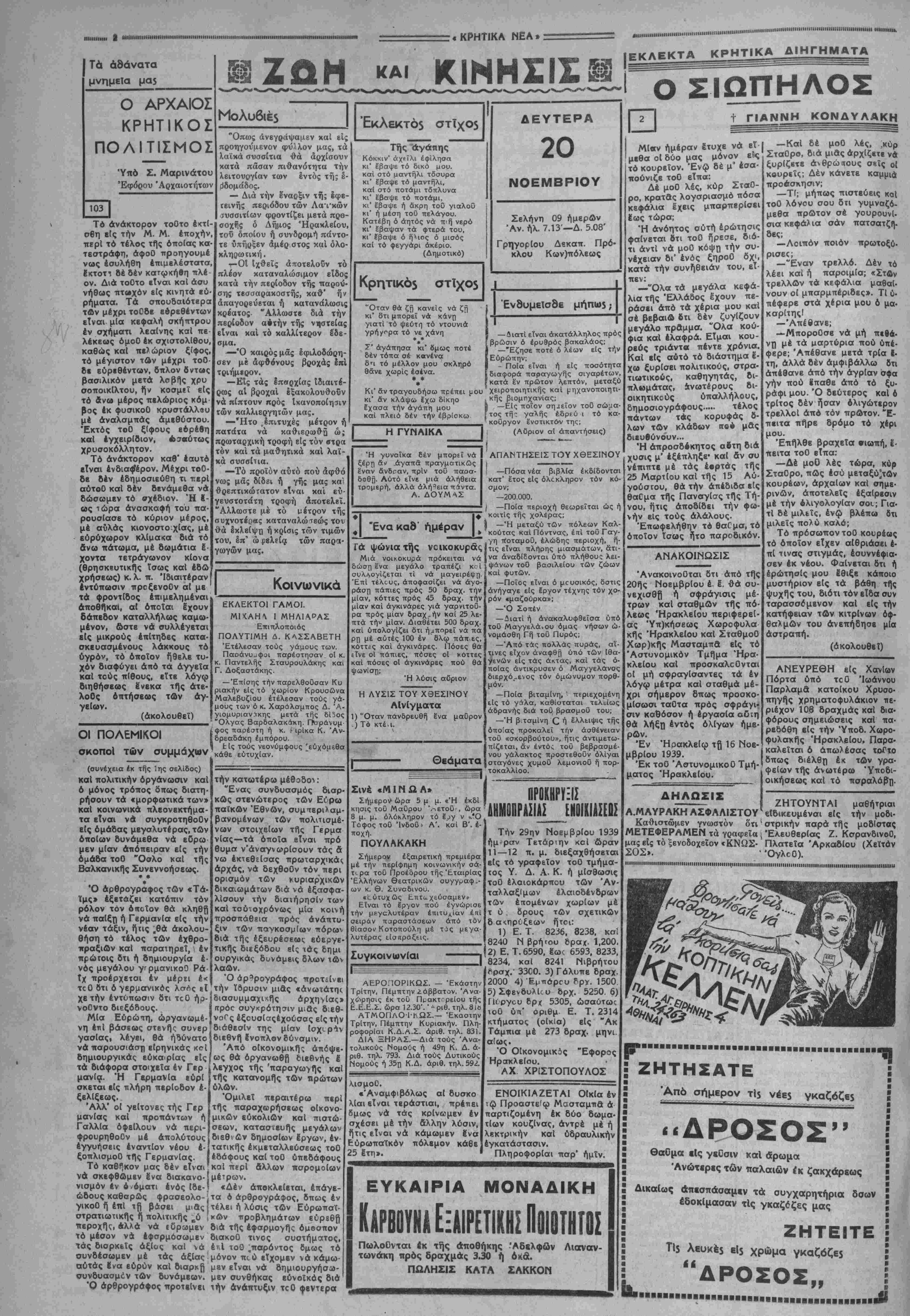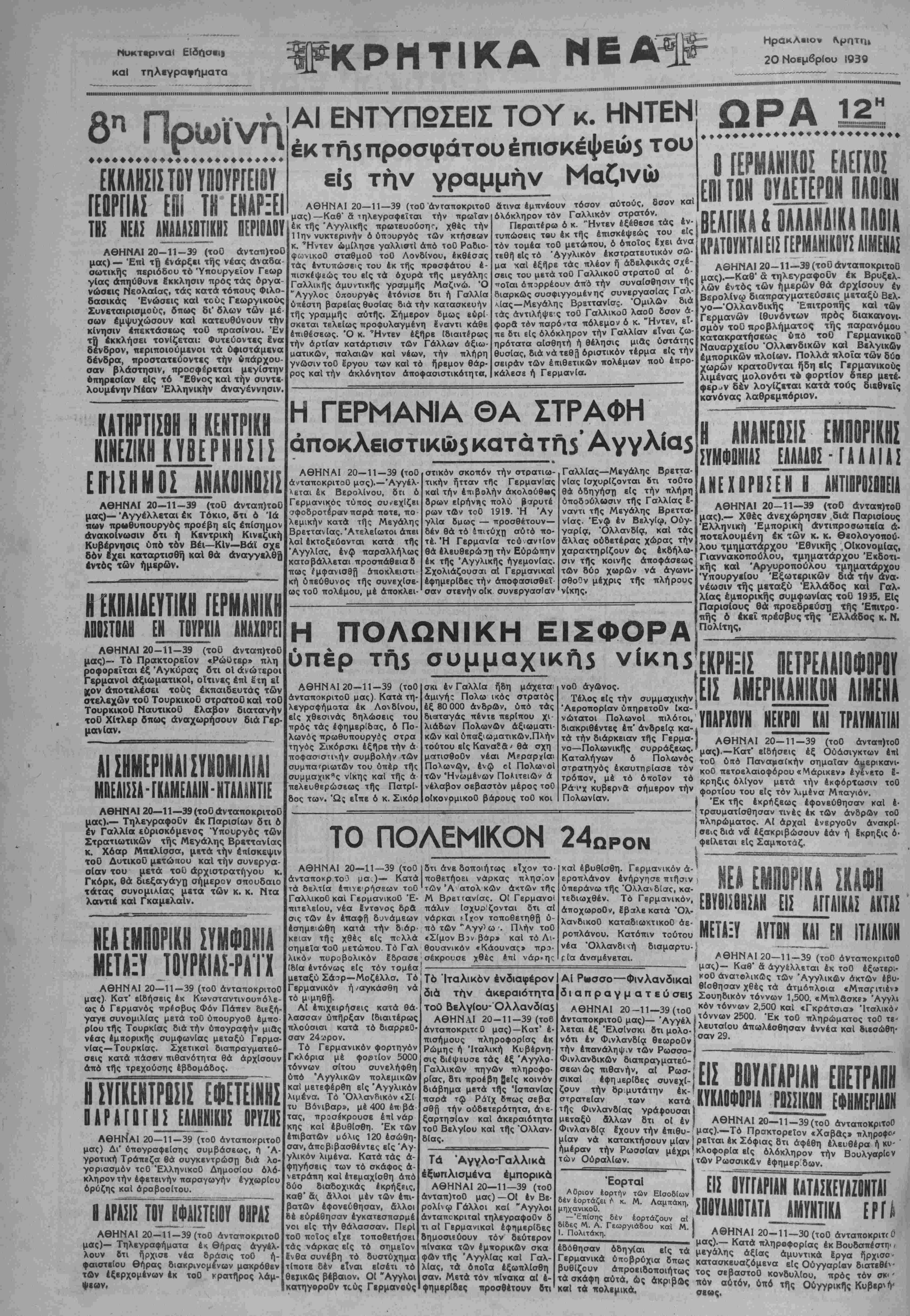 ΑΘΗΝΑΙ 20-11-39 (τοΟ άνταποκριτοΟ