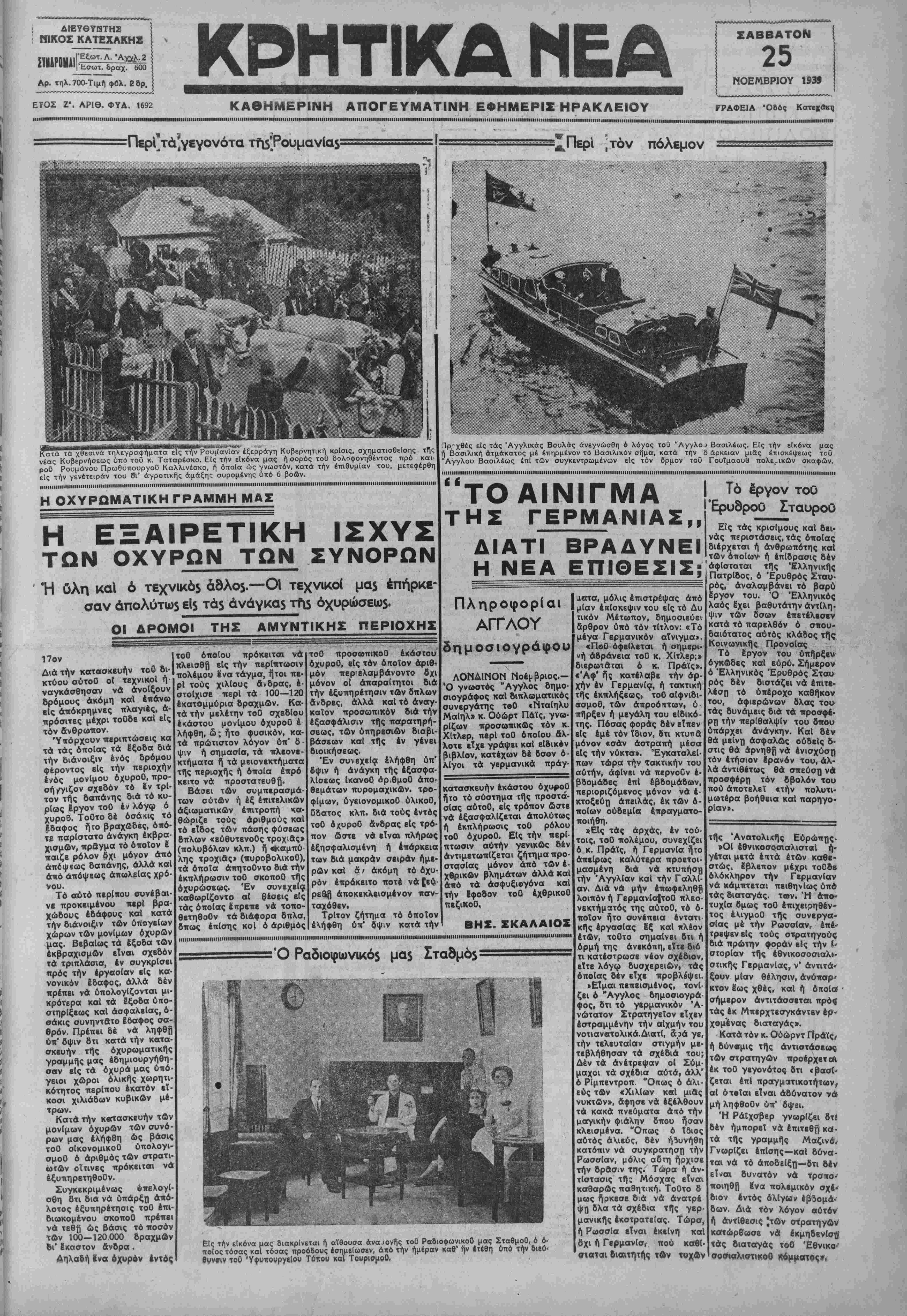 Ι ΑΘΗΝΑΙ 25—11—39 (τοΟ άνταποκριτοΟ