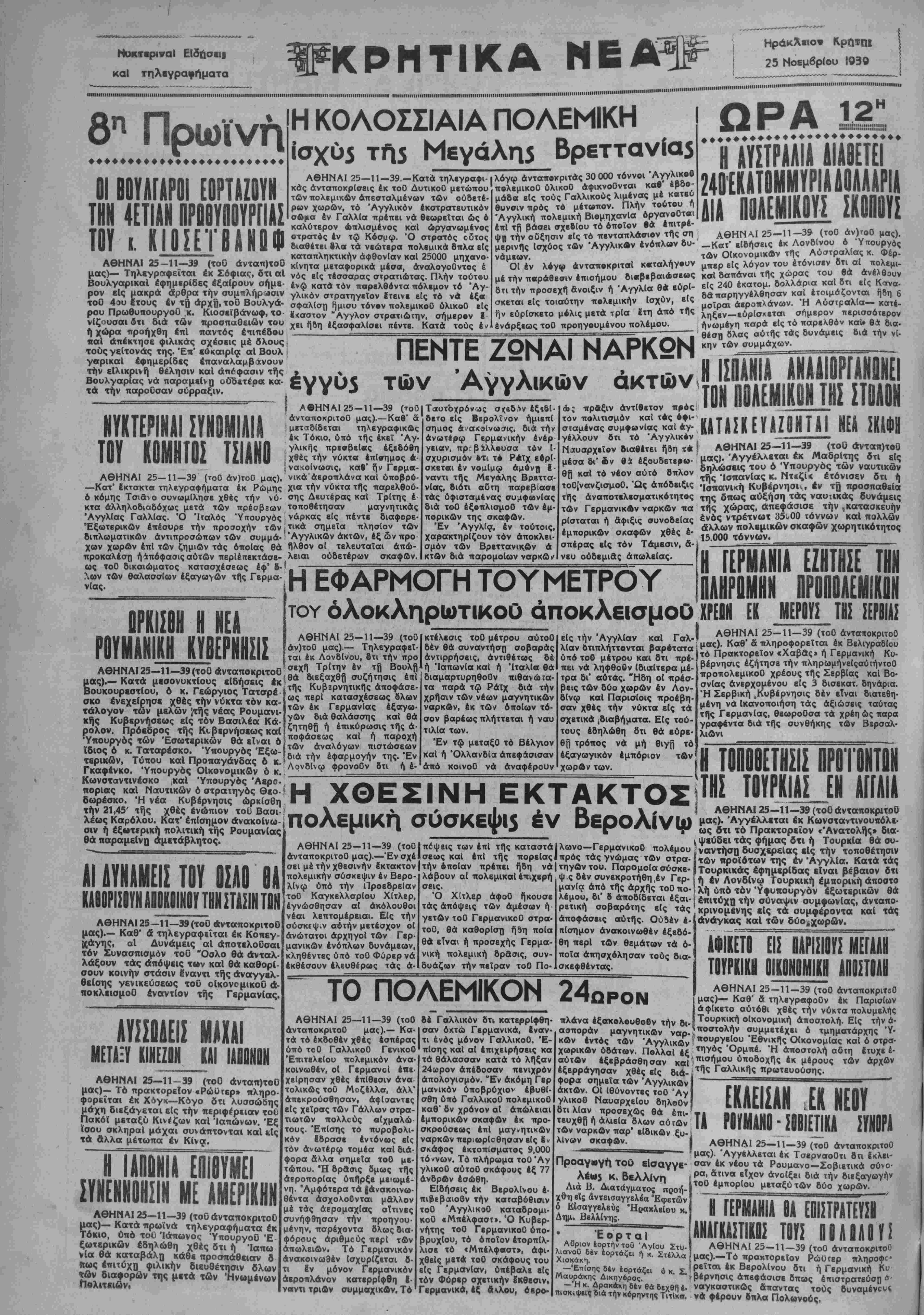 ΑΘΗΝΑΙ 25-11—39 (τοΟ άνταποκριτοΟ