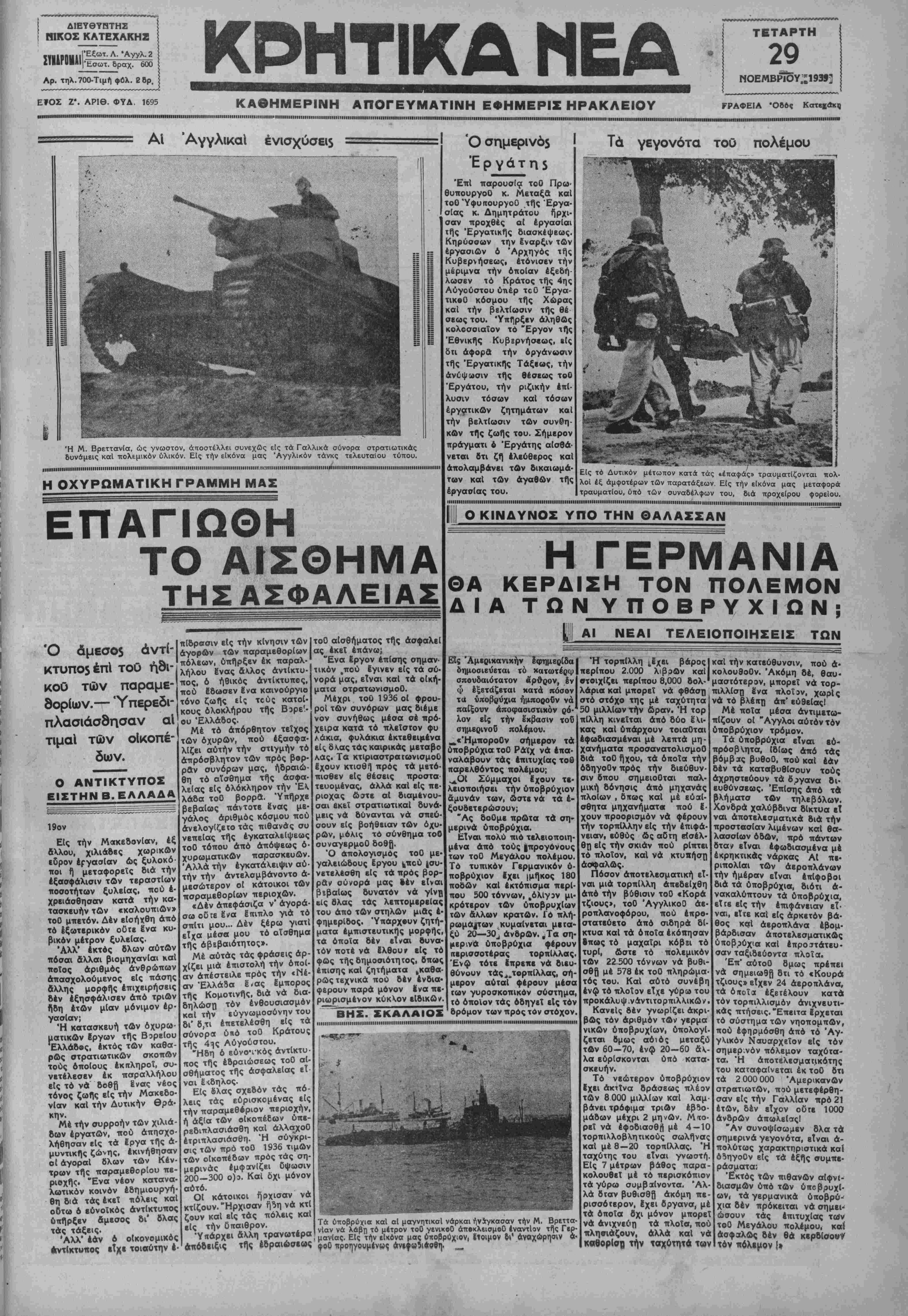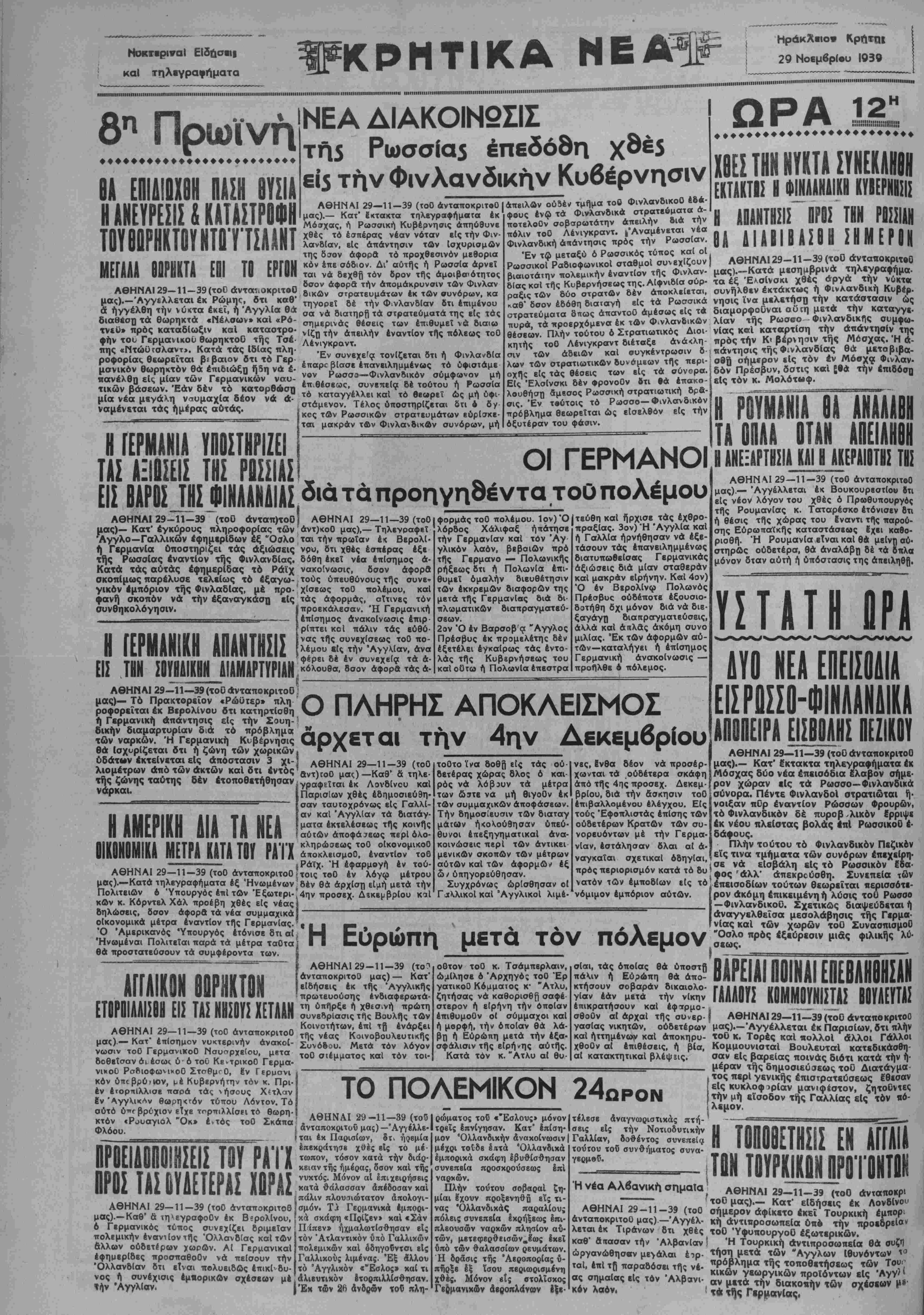 ΑΘΗΝΑΙ 29—11—39 (τοΟ άνταποκριτοΟ