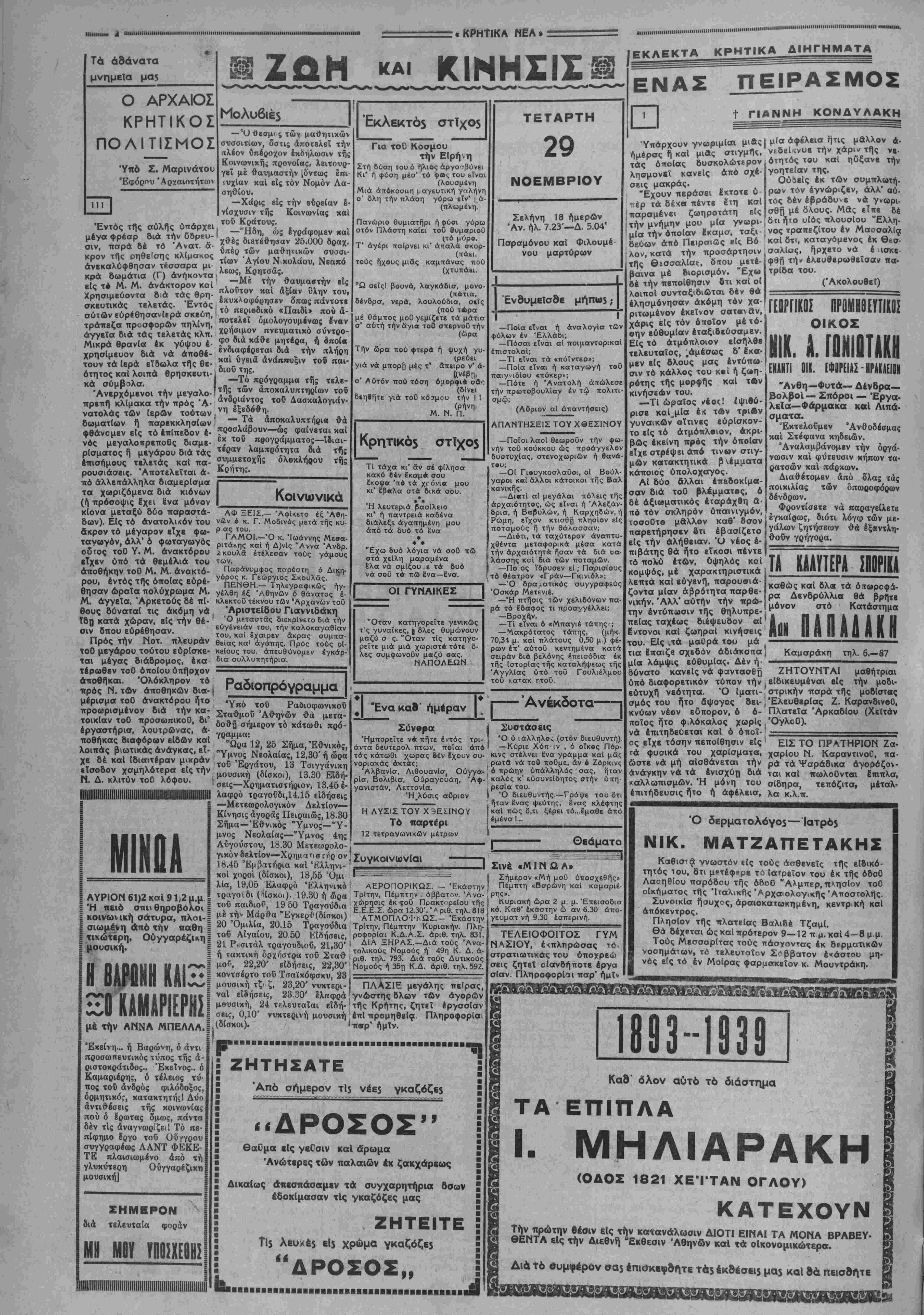 — Ό ϋεσμ< ς τών μαθητικών συσσιτίων, δσιις αποτελεί τήν πλέον ΰπέροχον έκόήλωσιν της Κοινωνικής προνοίας, λειτουρ¬ γεί μέ θαυμαστήν ^6'ντως έπι ίυχίαν καΐ είς τον Νομόν Λα- σηθίου. —Χάρις είς τήν εΰρείαν §· νίσχυσιν τής Κοινωνίας και Έκλεκτ05 Εντός τής αυλής υπάρχει _! πηλίνη, αγγεία διά τάς τελετάς κλπ. Μικρά θρανία έκ γύψου έ- χρησίμευον διά νά αποθέ¬ τουν τά ιερά είδωλα τής θε· ότητος και λοιπά θρησκευτι¬ κά σύμβολα. Ανερχόμενοι τήν μεγαλο- κλίμακα τήν προς Ά· Κ,Ρ* λ8 ΜμάΜ ° Α( 2« ίην Ζ; ~Μέ ** θαυμα.τήν ·1ς εις τ* Μ. Μ. *νάκτορον καϊ Μχον χα1 ά|ίαν%λ ^ του, Χρησιμεύοντα δ.ά τάςβρη. |χυχλοφό ησ8ν 8πως πάντοτε σκευτικάς «*«*· Εντός ^ ^^5 ^ & αυτών εύρίθησανίερά σκευή, _>.. όμολογουμίνως |νβν