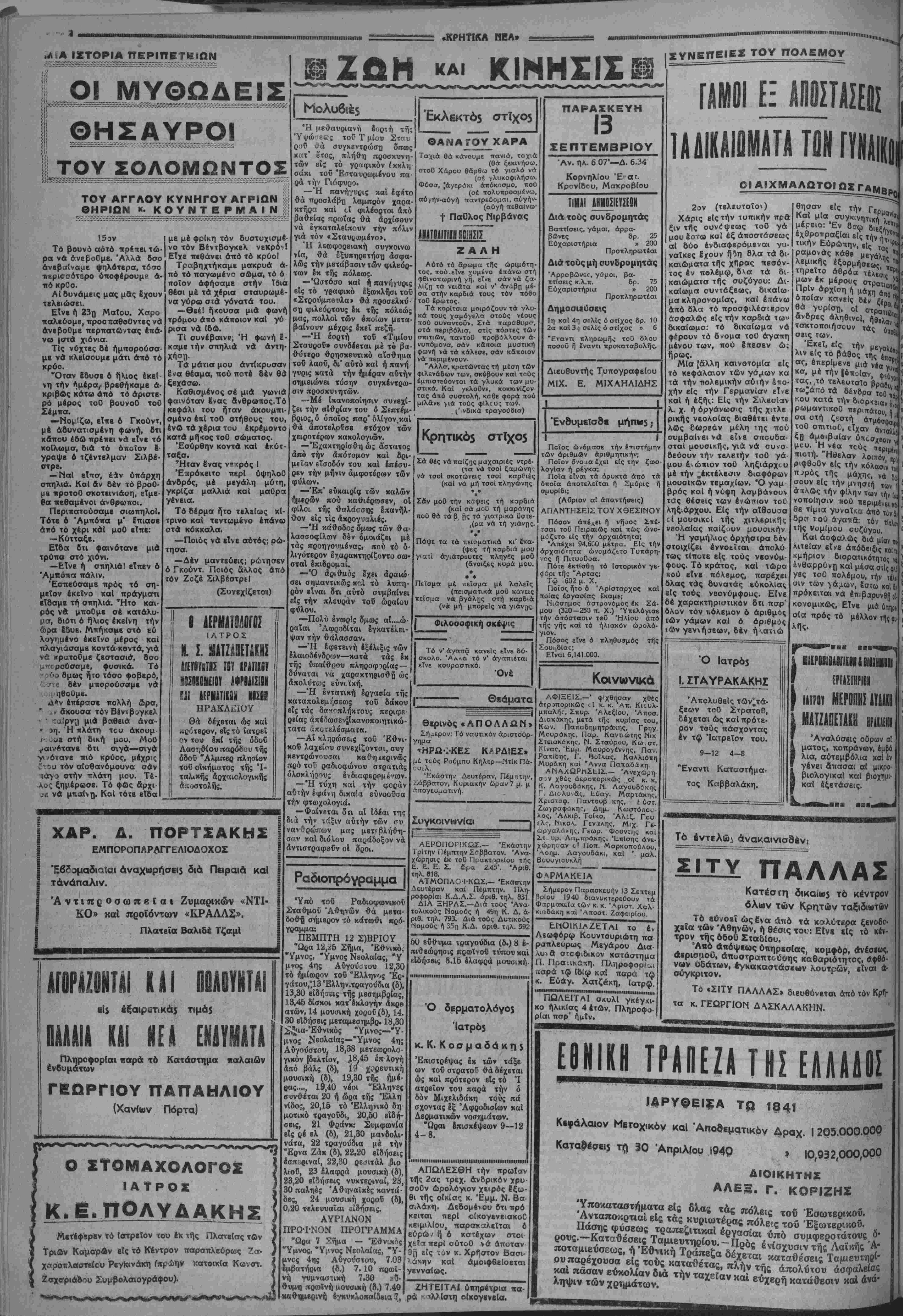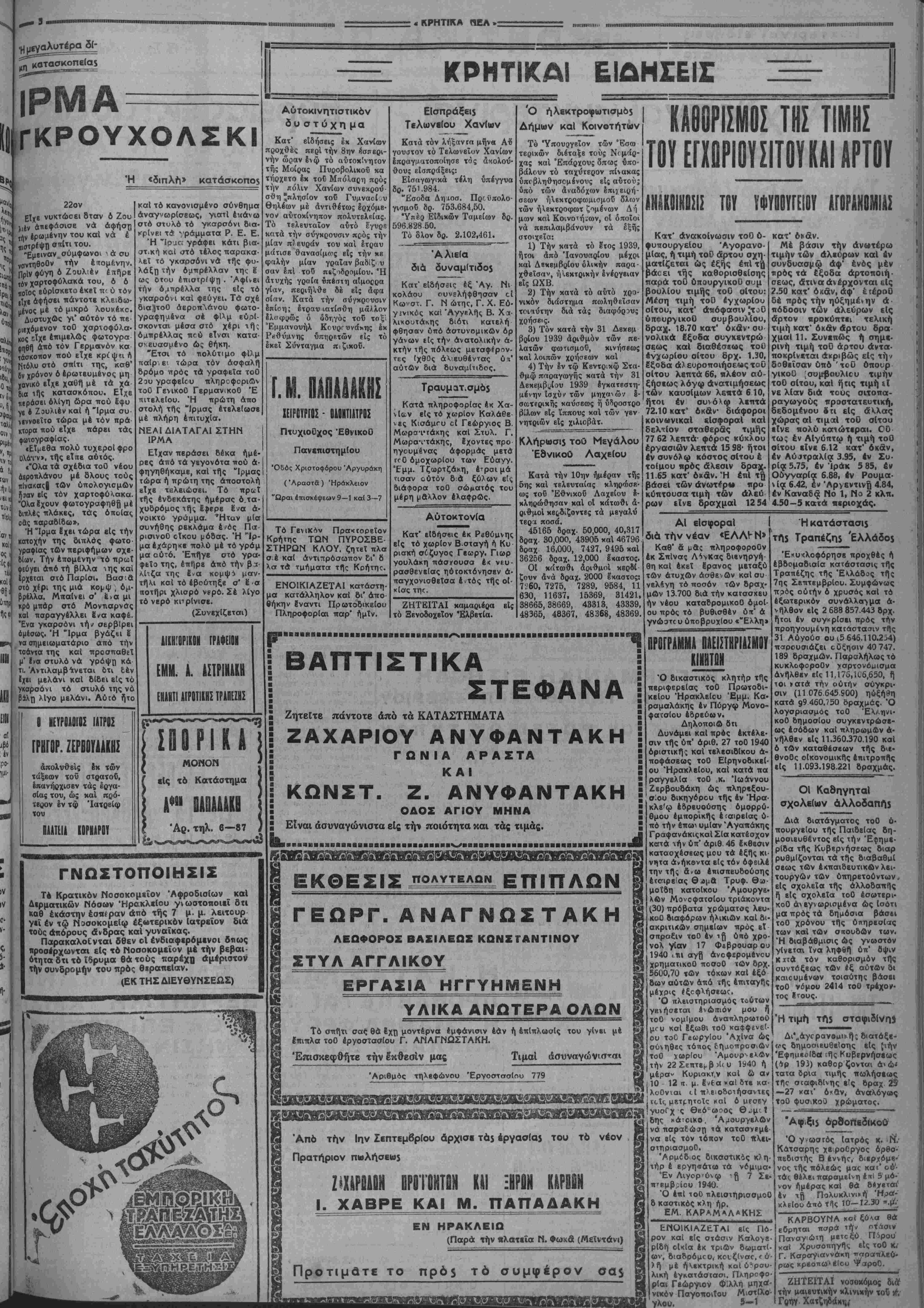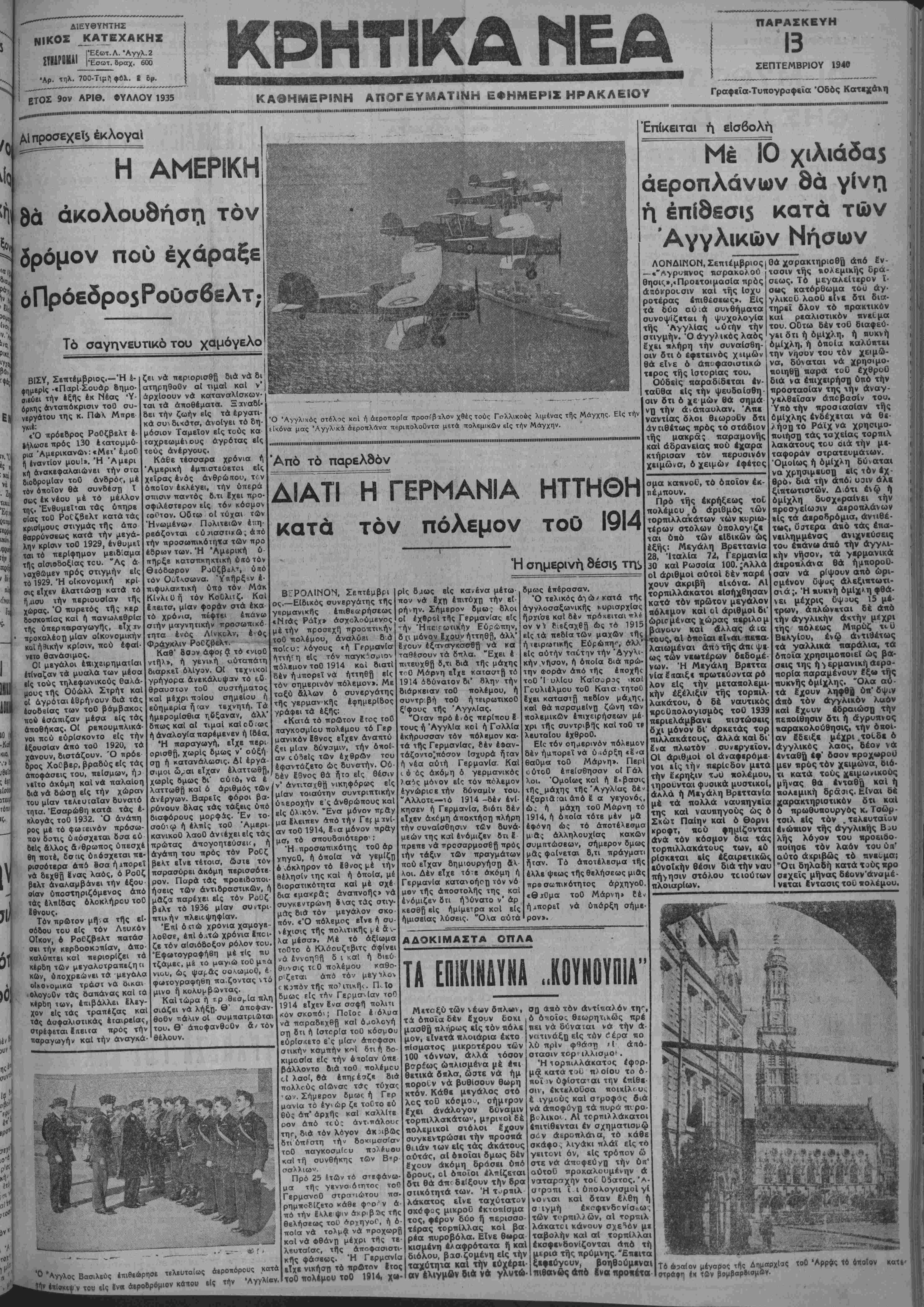 ΕΤΟΣ 9ον ΑΡΙΘ. ΦΥΛΛΟΥ 1935 ΚΑΘΗΜΕΡΙΝΗ ΑΠΟΓΕΥΜΑΤΙΝΗ ΕΦΗΜΕΡΙΕ ΗΡΑΚΛΕΙΟΥ Γραφεΐα-Τυπογραφεϊα Όδός Κατ«χσ*η