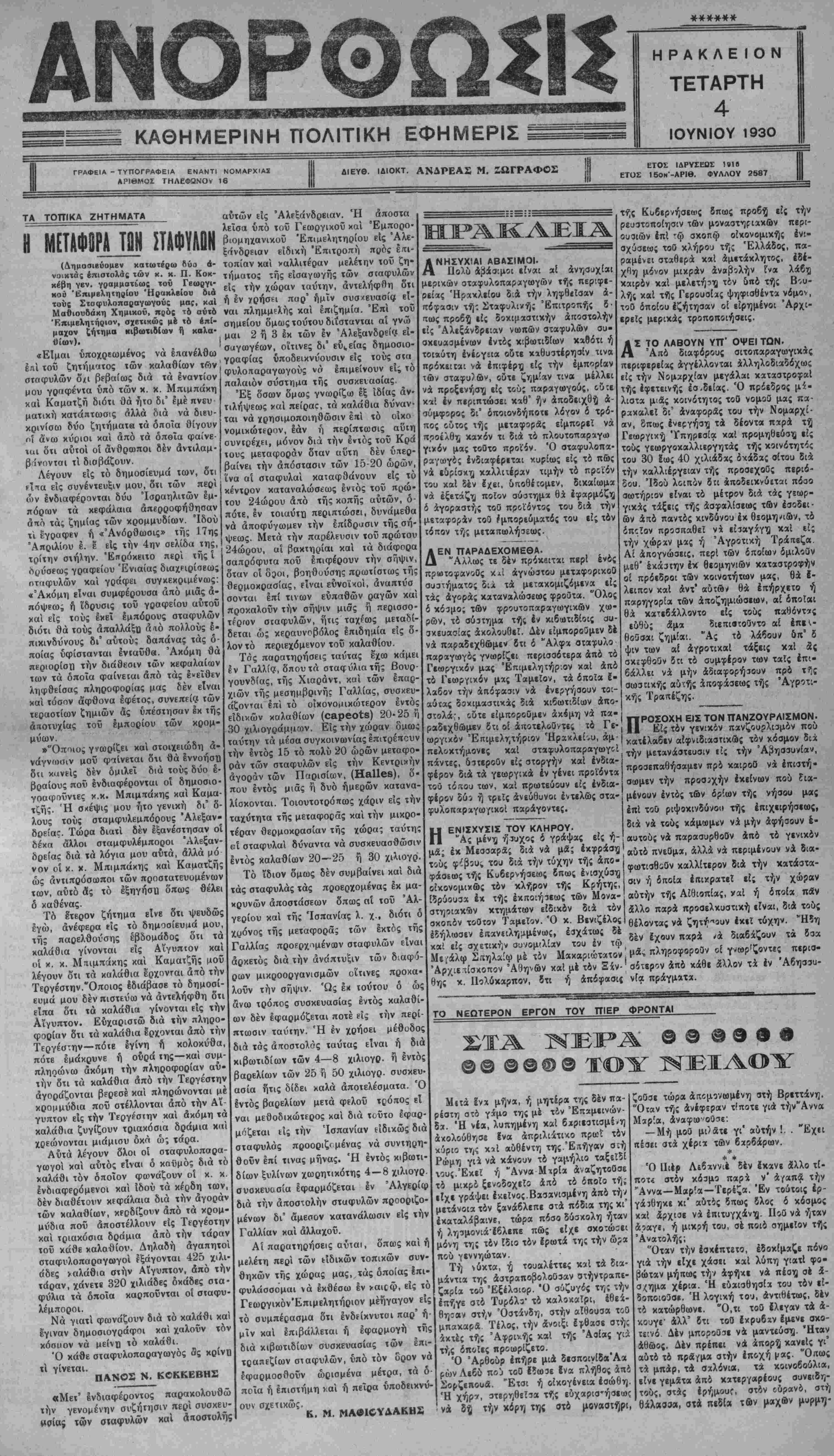 μανιχόν χαί 1 Γιοαγχο3λαυϊ<ίν. ΑΘΗΝΑΙ 3 Ιουνίου.— Τήν έν- μπορικής συμβάσεως μεταξύ τοΰ δεκάτην καΐ ήμίσειαν προ μεσηα· ένταϋθα πρεσβευτοΰ τής Οϋγγα· βρίας οιίμρρον θά γίνη είς τό ύ- ρίας χαί τοΰ αναπληρωτού τοΰ ύ· πουργείον τών Εξωτερικών ή ύ- πουρνοΰ τών Έξωτρρικών κ Κα τής έλληνοουγγρικής έ- βαπανανιώτΐ). Ή Τοπιχή Έππριπή χοΟ έορχαομοΟ τής Εκατονταετηρίδας δι' εγγράφου της προς τδν έν Αλεξάνδρεια Πατριάρχην κ κ. Μελέτιον γ< ωρίζΐΐ 8:ι πρόκειται ν-} άνεγερθή έν Έραχλείφ Ήρψον Μι νωϊχοΟ ρυθμ-5ΰ πρίς τιμήν χαί ίίς μνή¬ μην χ'δν ηρώων τ«ι χών έπαναατά:£ων, στασίου. Ενίίχις. II ΖΗΤΗΜΑΤΑ ϊ ΑΘΗΝΑΙ 3 Ίουνίου.-ΕΙςτόύ. πουρνεΐον τής Εθνικής ΟΙκονομΙ- ας ελήφθησαν σήμερον αρκετά τη λεΥραφήματα σταφιδικών ουν{· ταιριομών, διά τών όπβίων ζητ(ΐ· ται η εφαρμογή τών έπιβαλλομί- διαφίρων Κρηχι- νων μέτρων προς προσταοίαν τή{ ΰανος τά εγκαίνια' σταφιδοπαραγωγής. Οί αυνετκιρι- θϊ τϊλϊοΒώΐι τήν 2δην Αύγούατου έ. Ι.' σμοΐ τονίζουν σύν τοις άλλοι; όη Ή επιτροπή ζη'εΐ ^ή' ή''·χήν έ* μέ-,πρέπει νά καταργηθή ή φορολβ· ρους του ίιποιχήριςΊν διά τήν έπιτέλεσιν γία τής σταφίδος. Ό χ. Βοϋρλβύ· χϋΟ έπιίιωχομένου Ιργο^ ώ; τέκνου τί)ς ' μης ομιλών σχετιχώς έδήλιιΟϊν 2 Κρήτης. "Εν συνεχεία ή τοτ χή Έπιτρο-' ΤΙ ή κυβέρνησις μελετά μέ Ιδΐ«ΐ· Γ.ή δι' ετέρου χης &·ϊγ^ίν-^) > -χο4ς διαφό ι τέραν προσοχήν το ζήτημα.