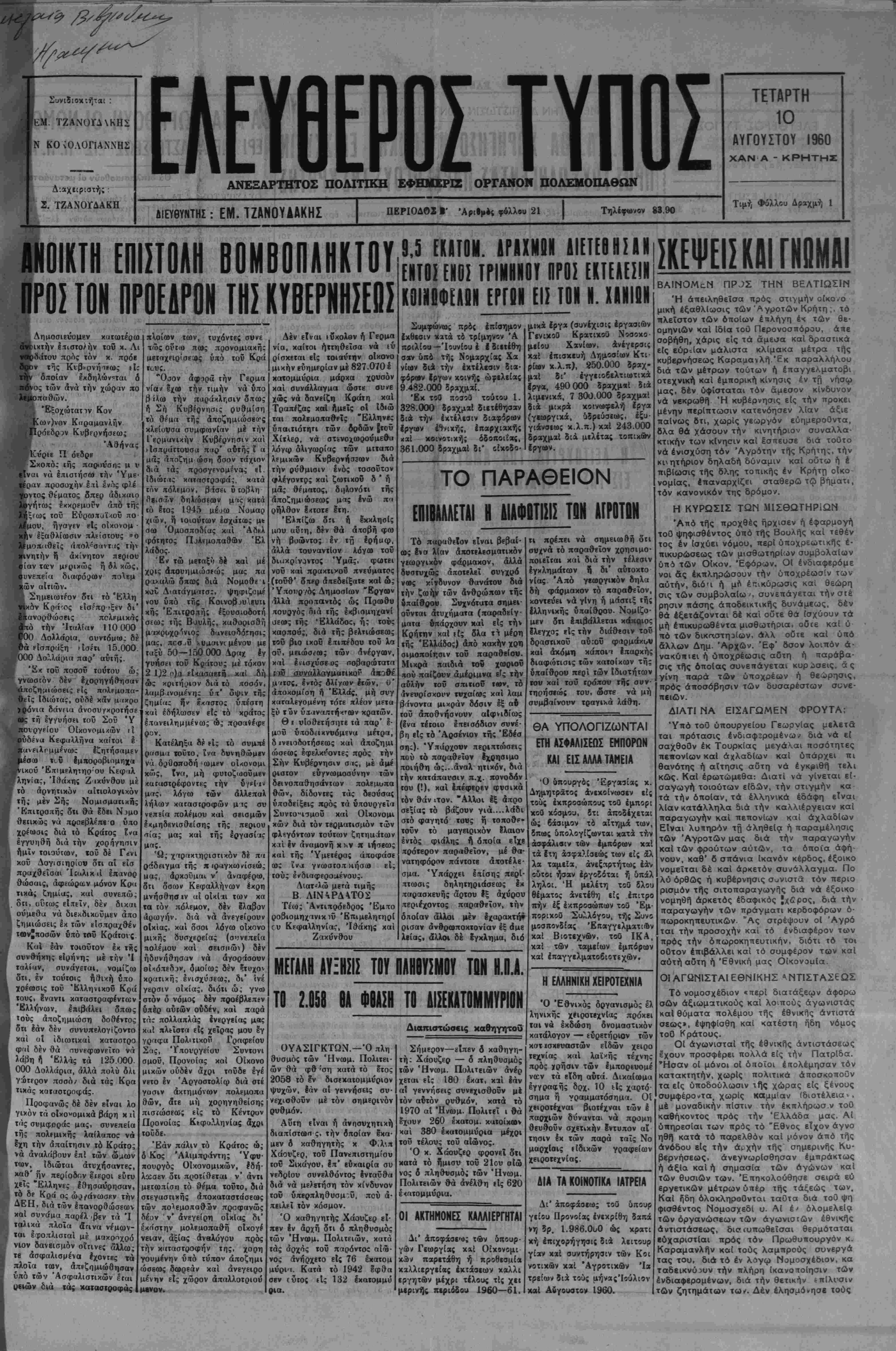 ΠΕΡΙΟΔΟΧ 1 ΆριΙ>έ; φόλλου 21