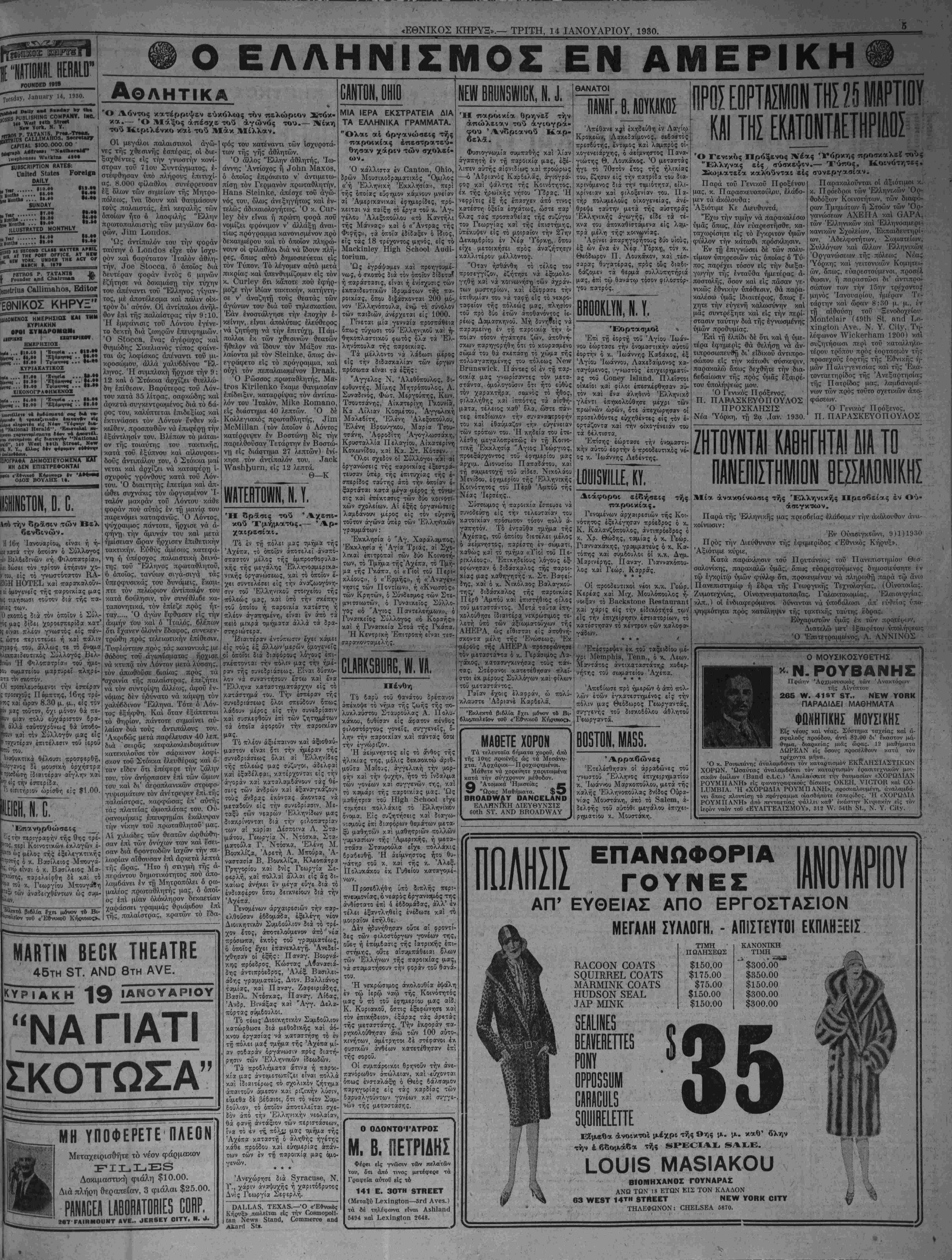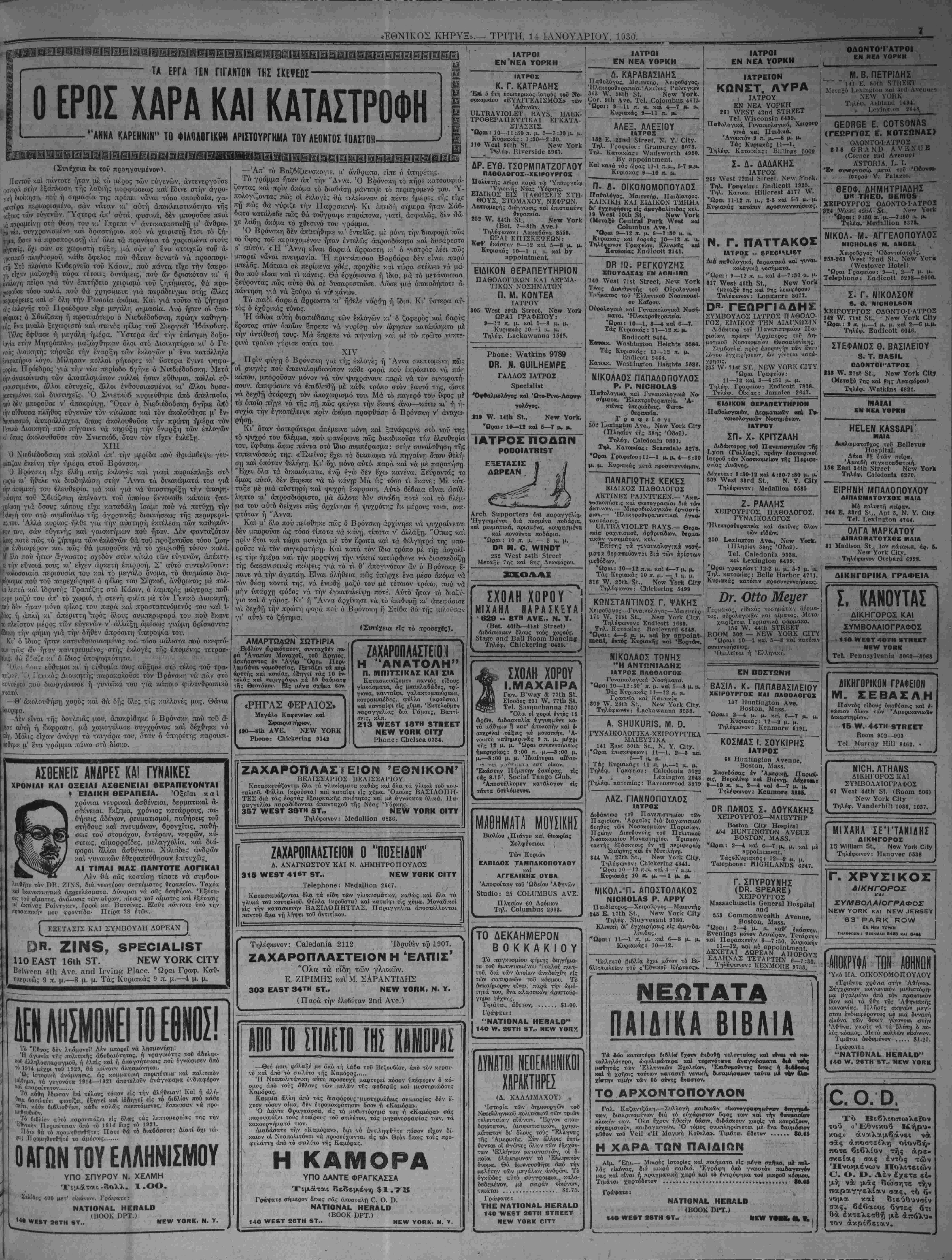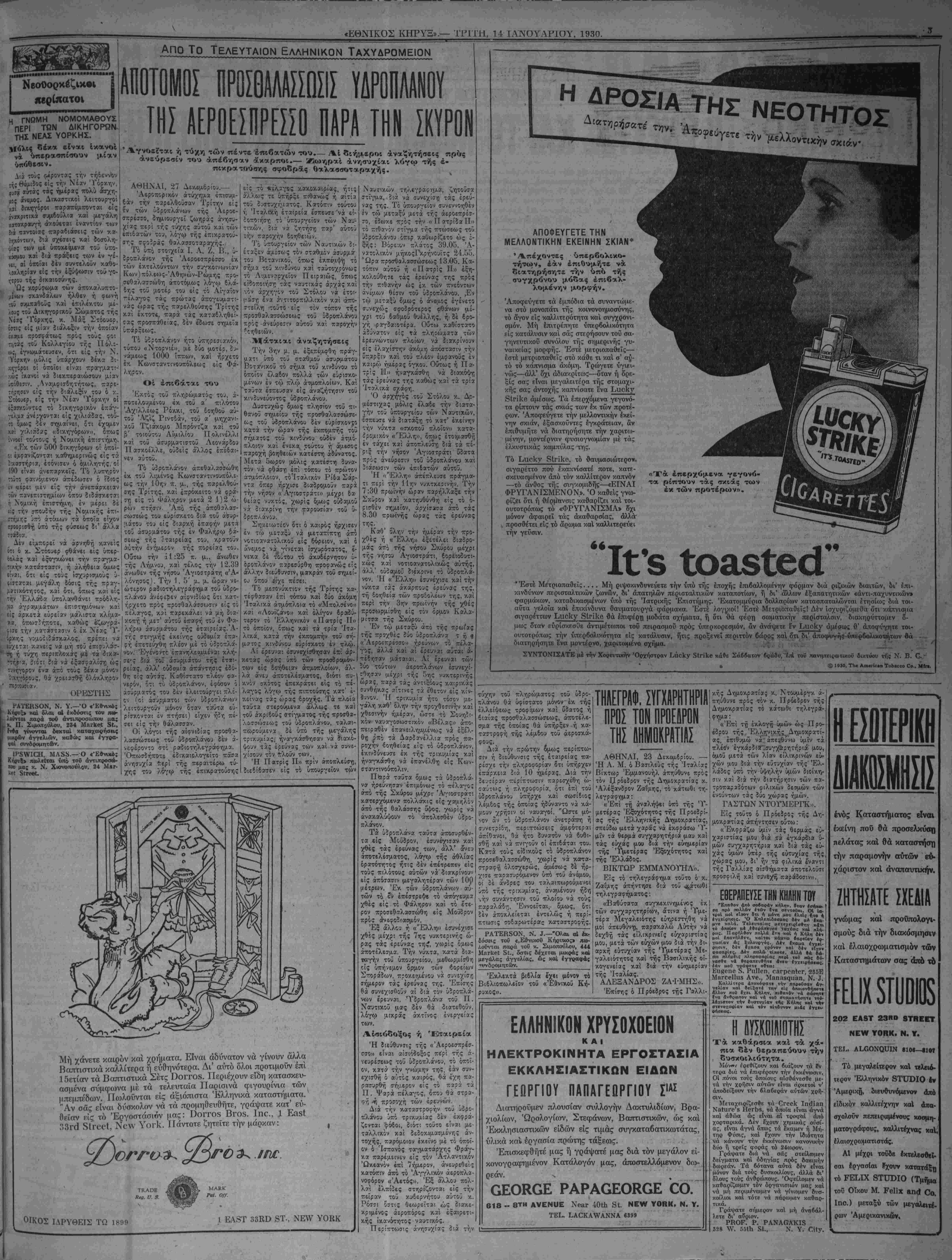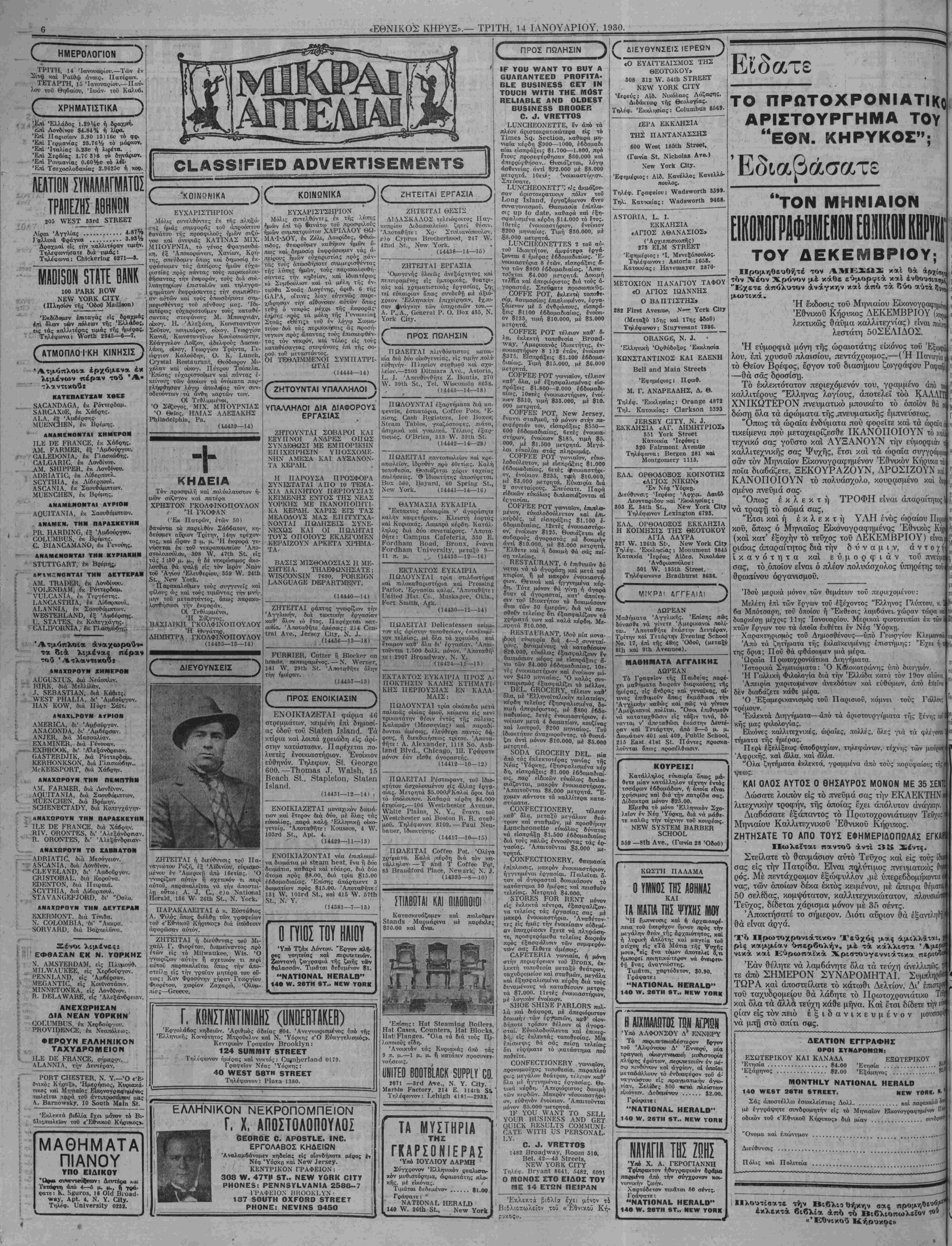 ΝΕΥ ΥΟΚΚ, ΤΡ1ΤΗ, 14 ΙΑΝΟΥΑΡΙΟΥ, 1930.