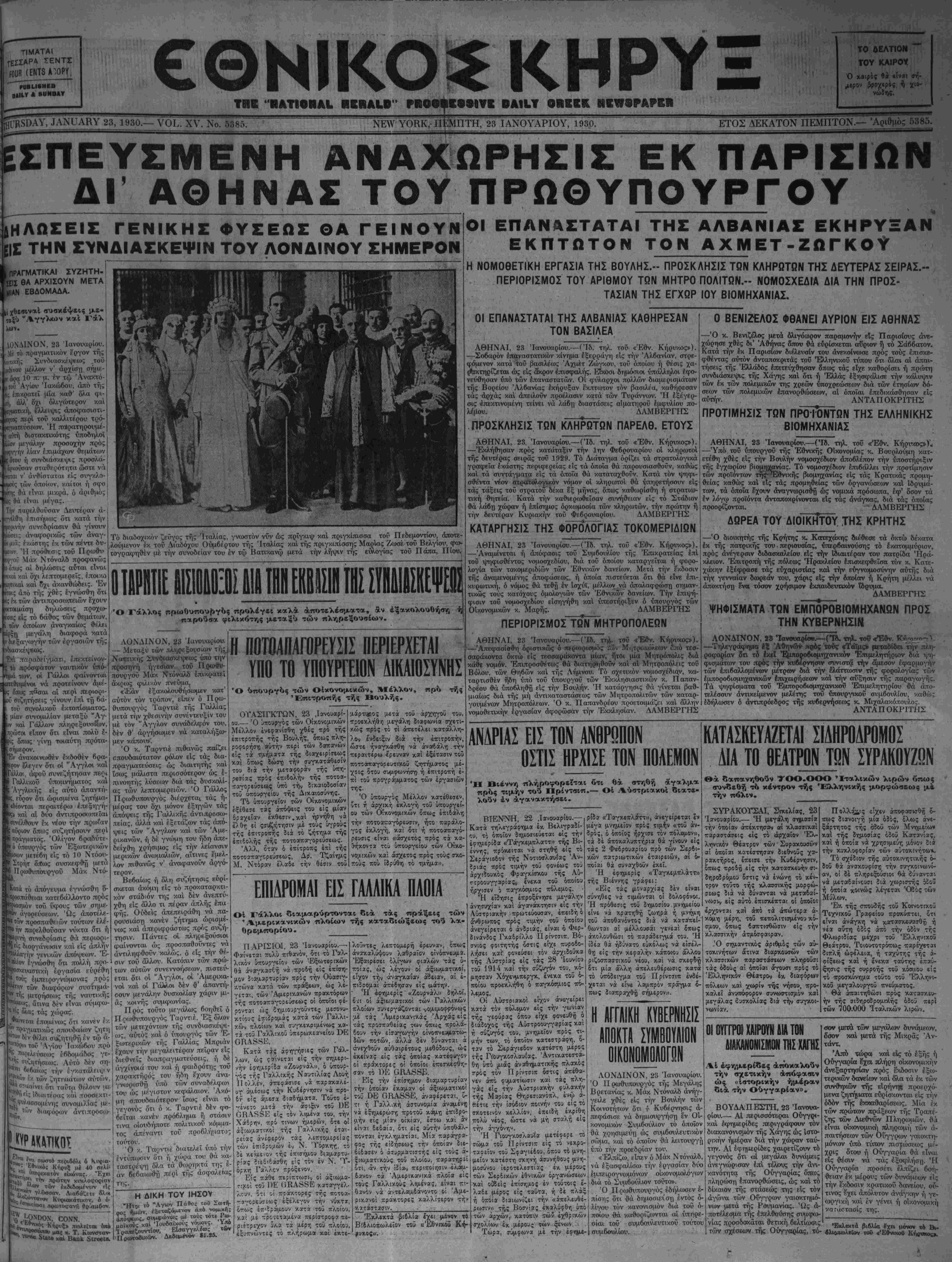 ΝΕΥ ΥΟΚΚ,· ΠΕΜΠΤΗ, 23 ΙΑΝΟΥΑΡΙΟΥ, 1930.