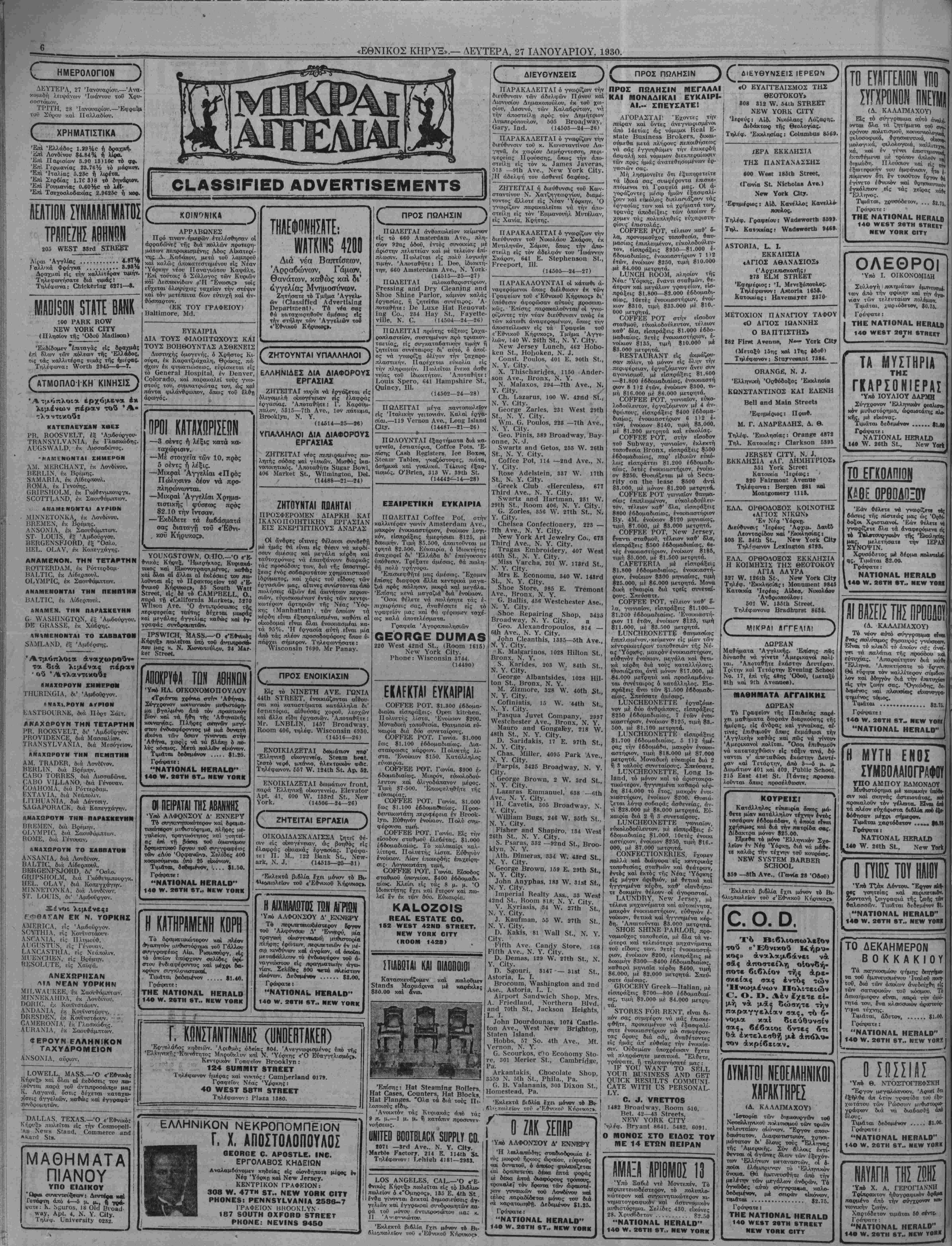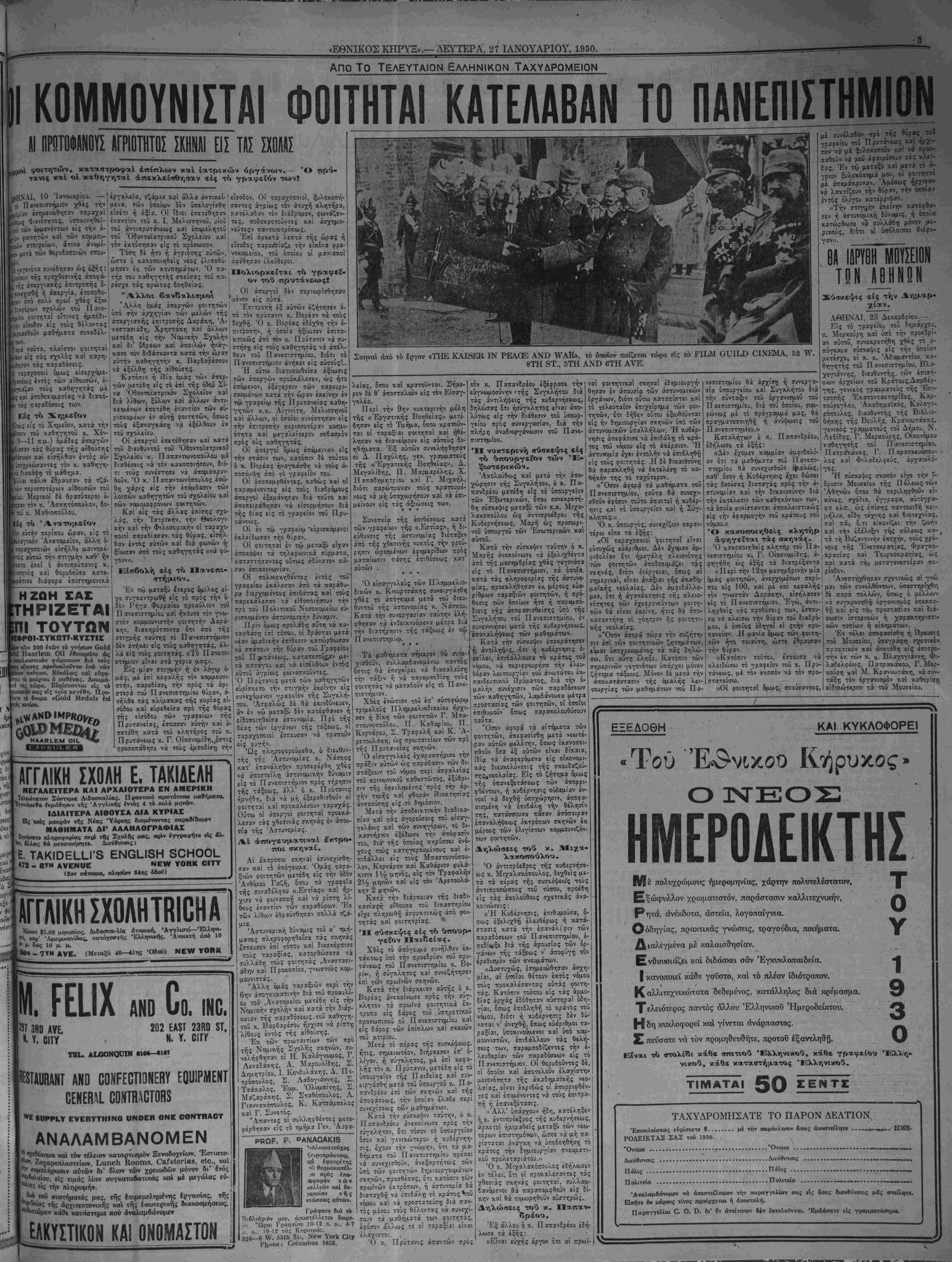 ΝΕ^ΥΟΚΚ, ΔΕΥΤΕΡΑ, 27 ΙΑΝΟΥΑΡΙΟΥ, 1930.
