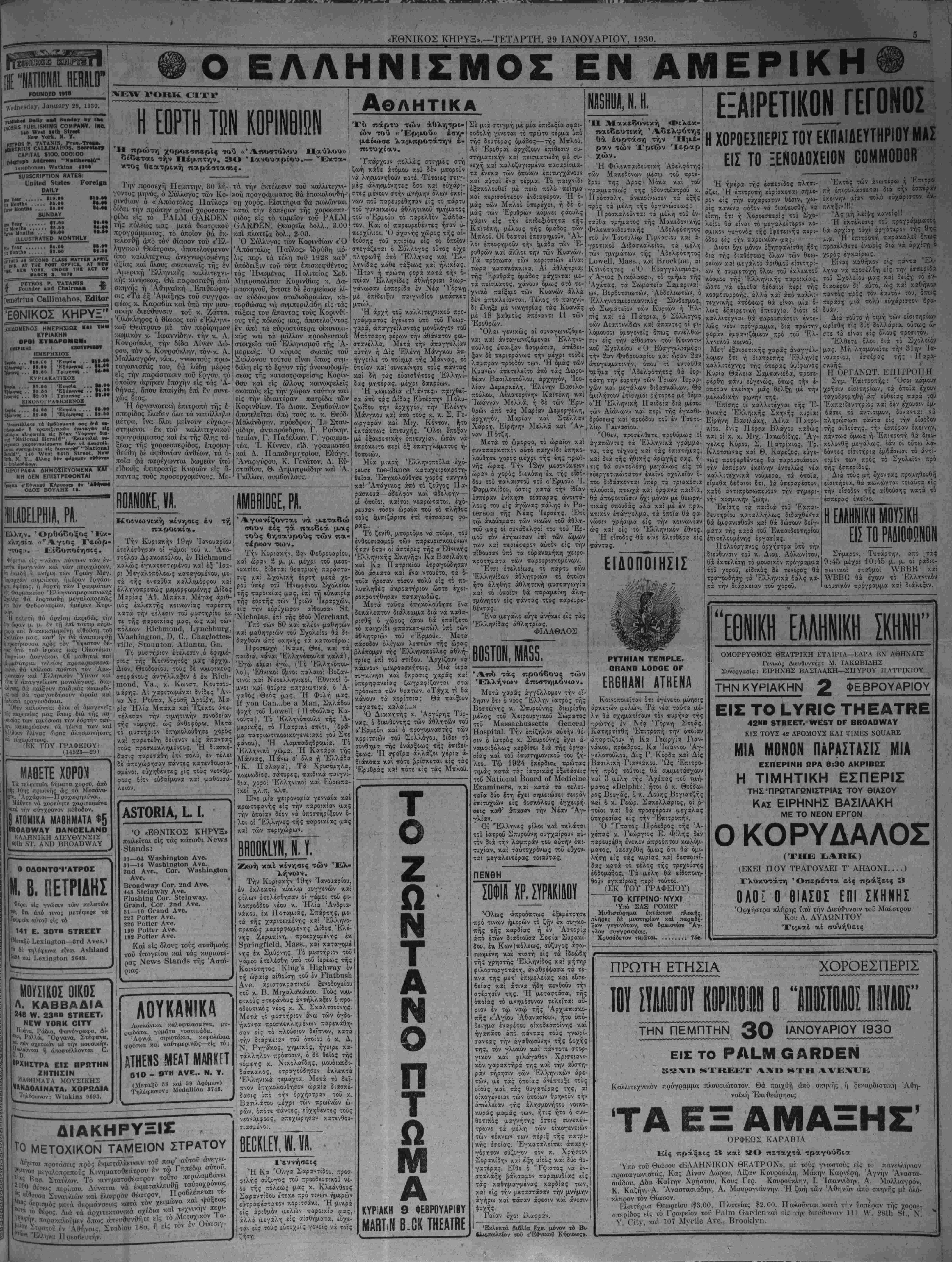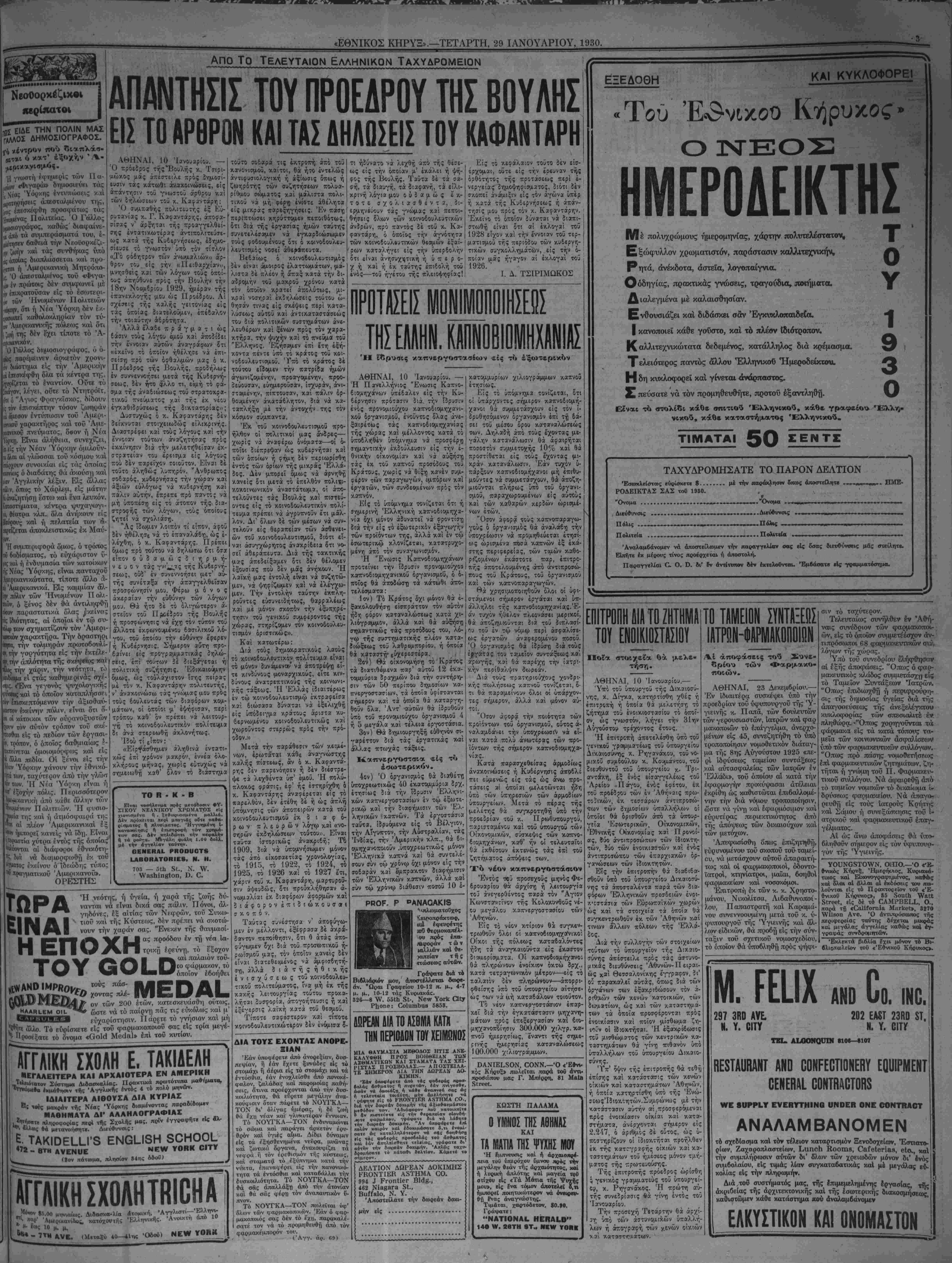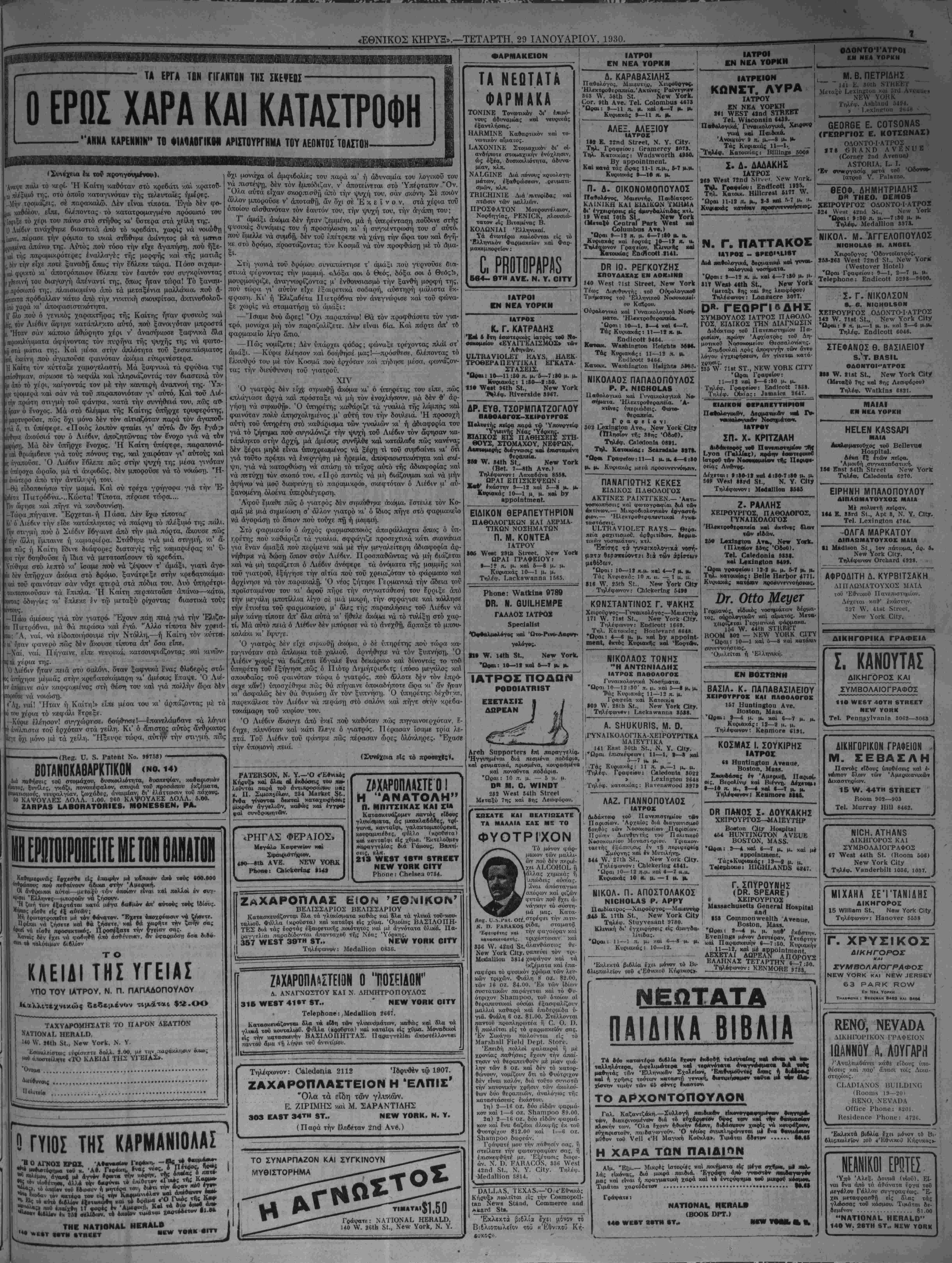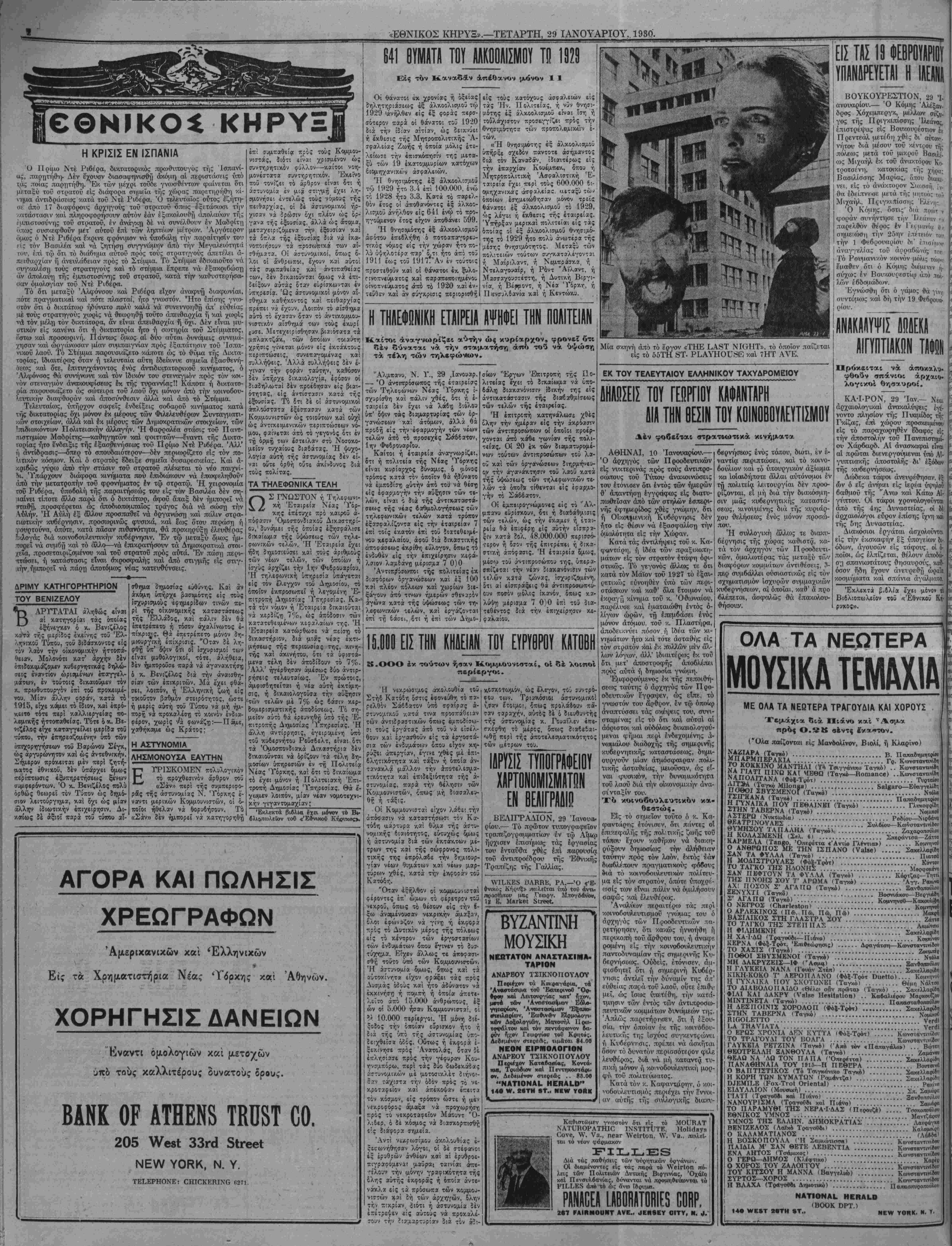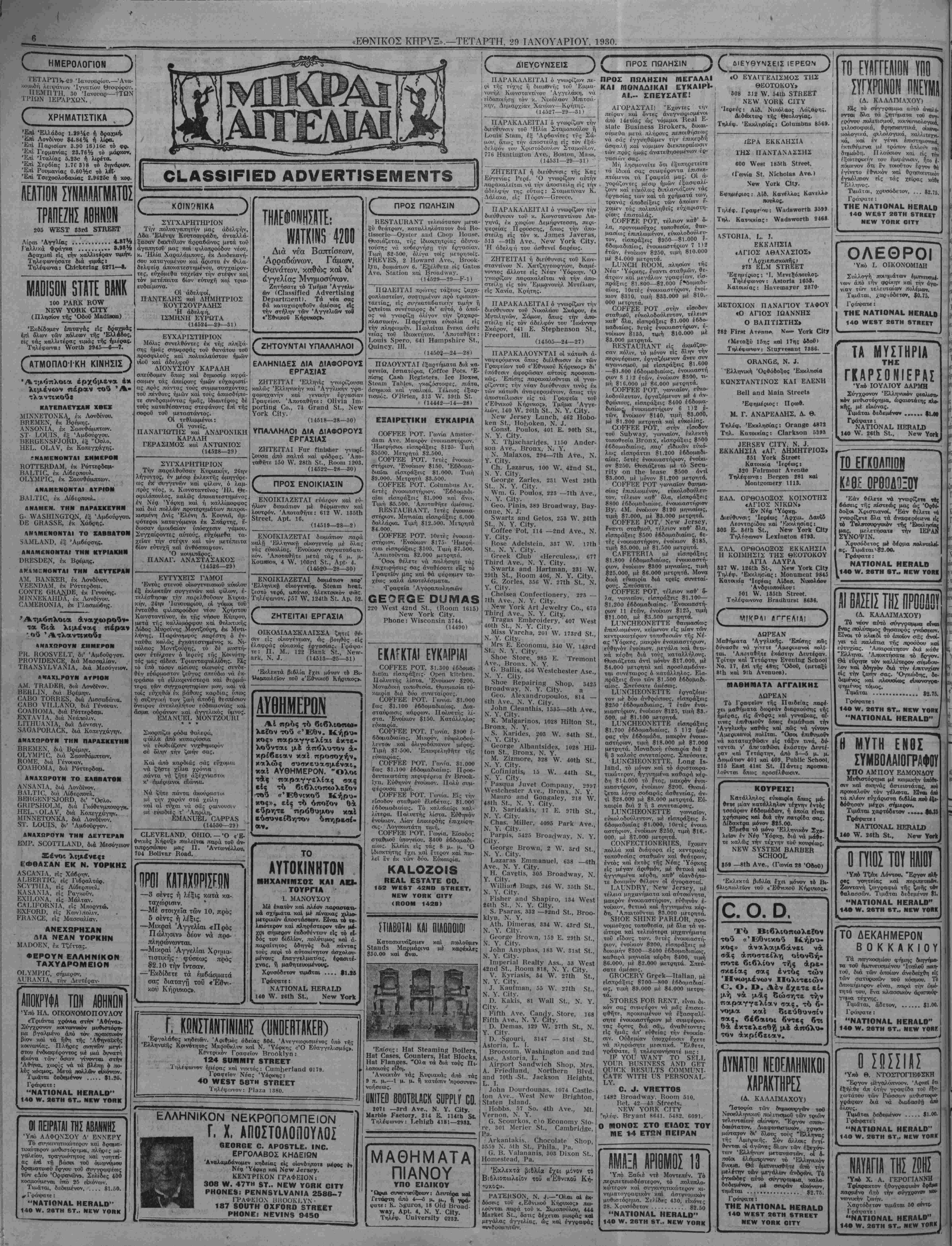ΝΕν ΥΟΕΚ, ΤΕΤΑΡΤΗ, 29 ΙΑΝΟΫΑΡΙΟΥ, 1930.