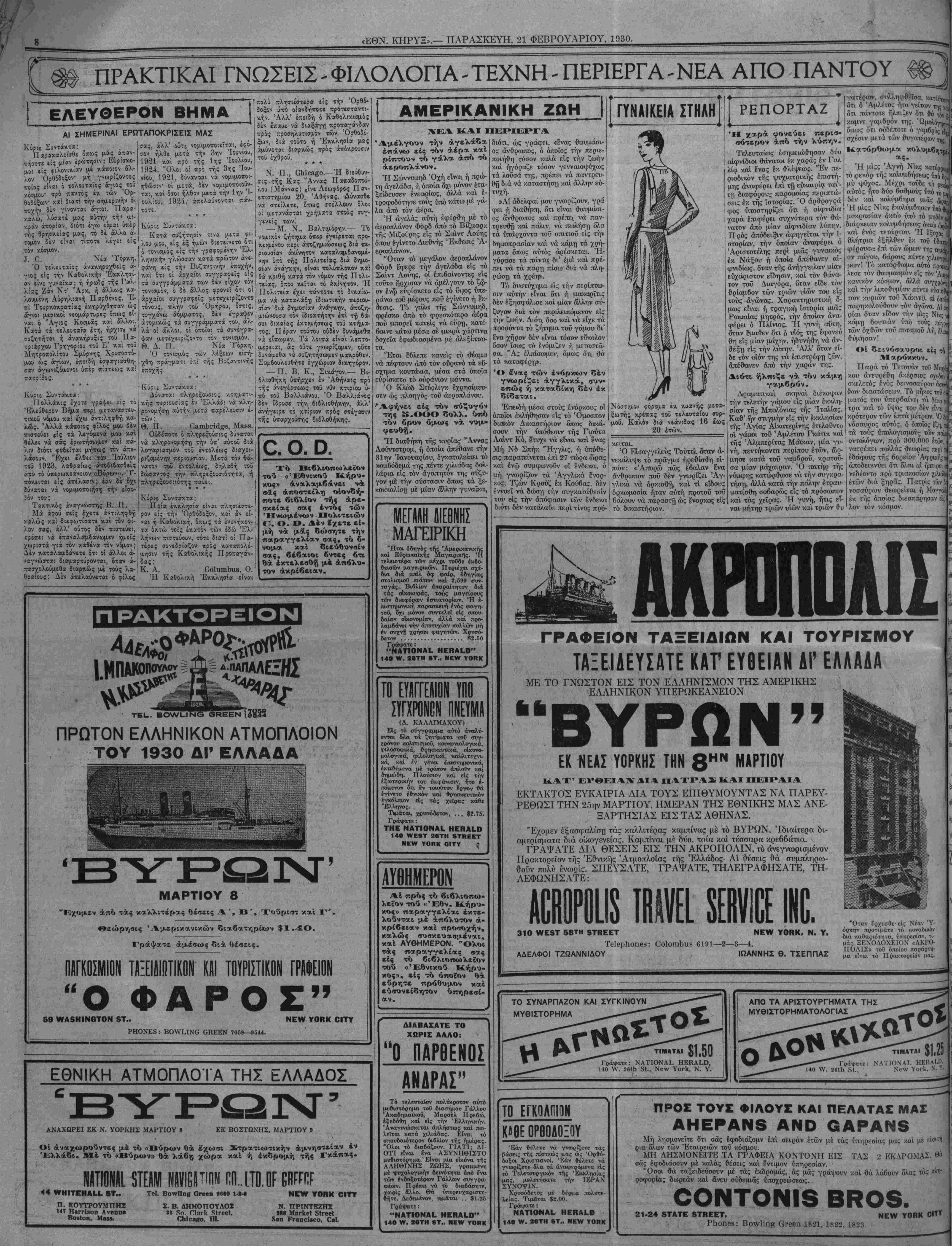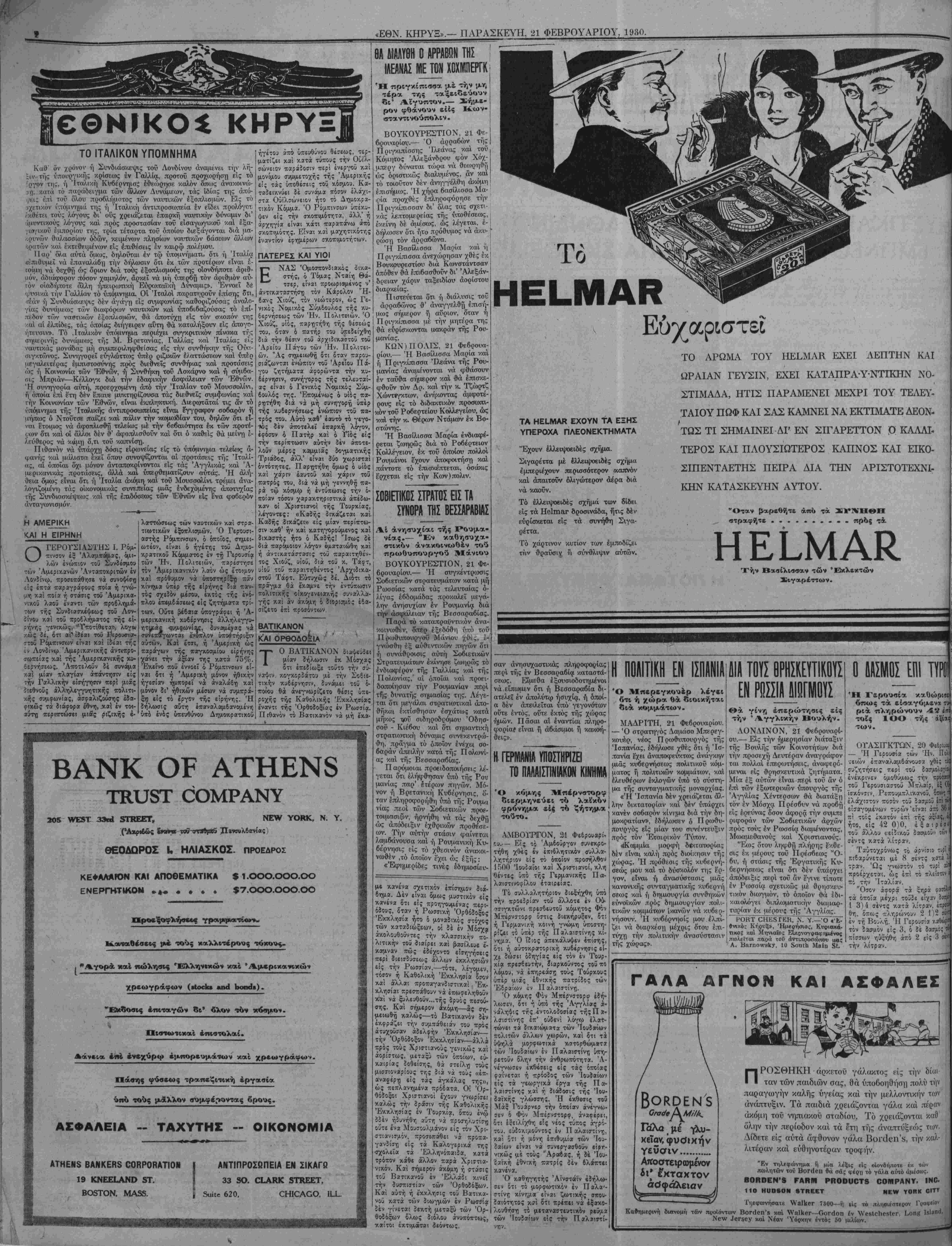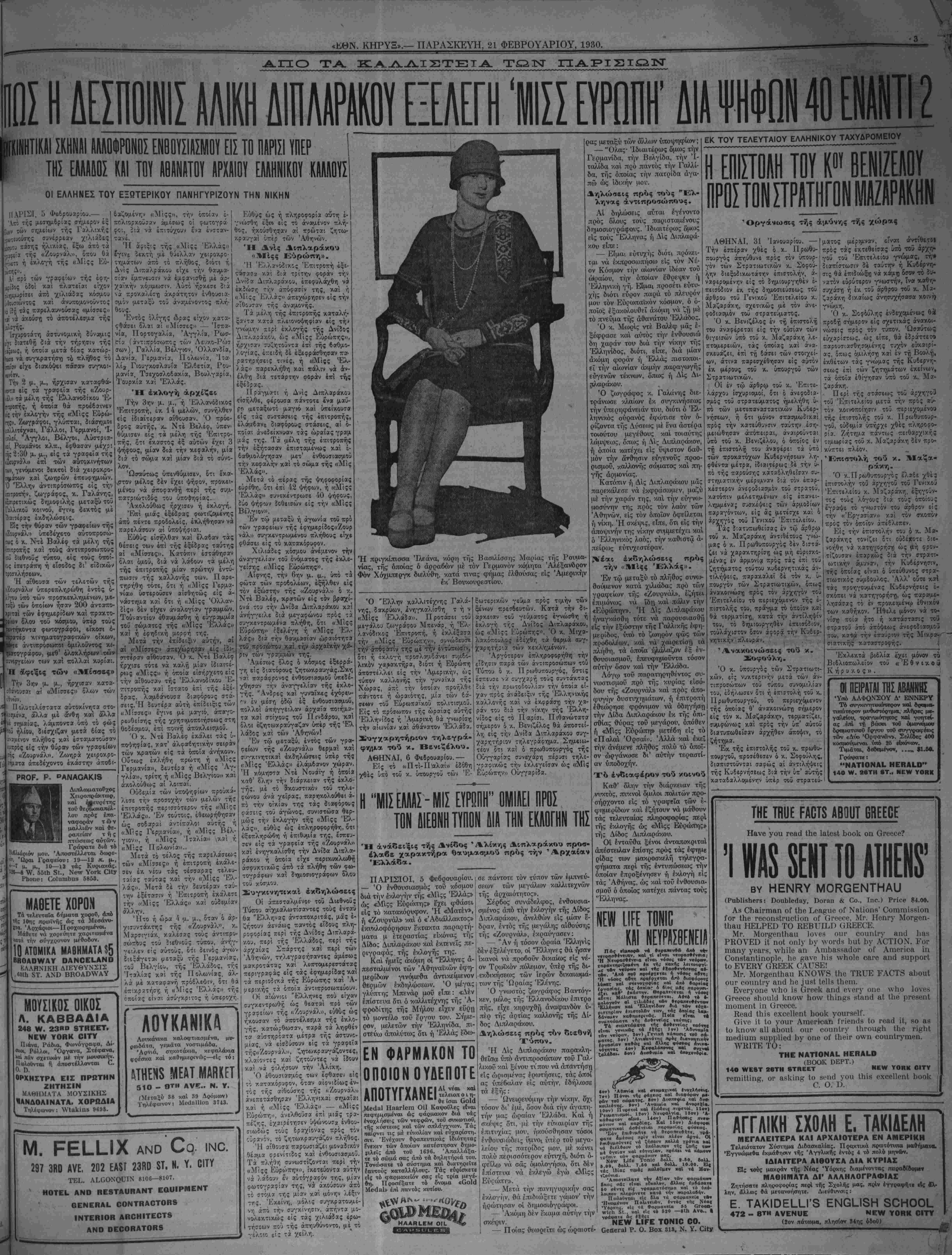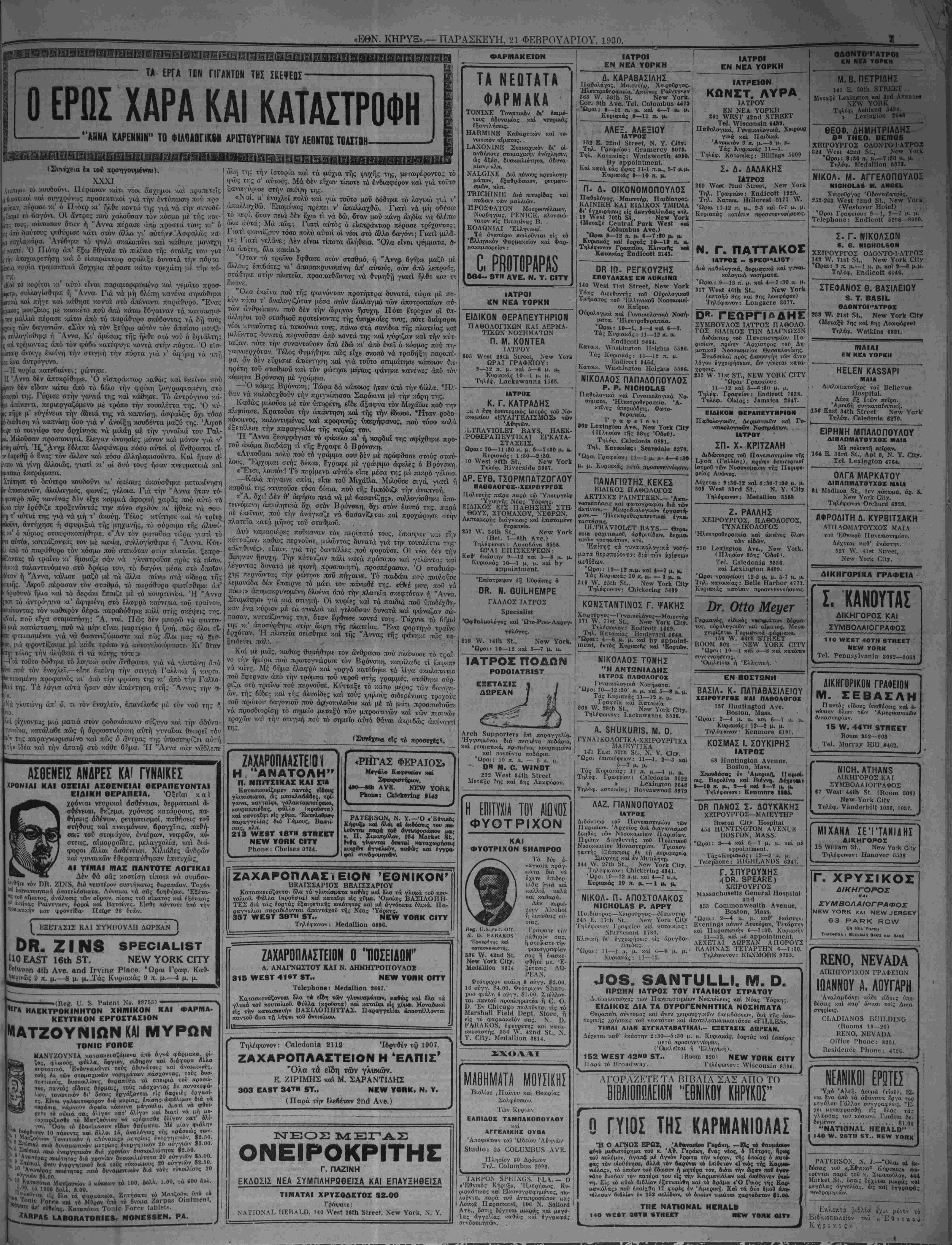=ΝΕν ΥΟΕΚ, ΠΑ^ΑΣΚΕΥΗ, 21 ΦΕΒΡΟΥΑΡΙΟΝ 1930.