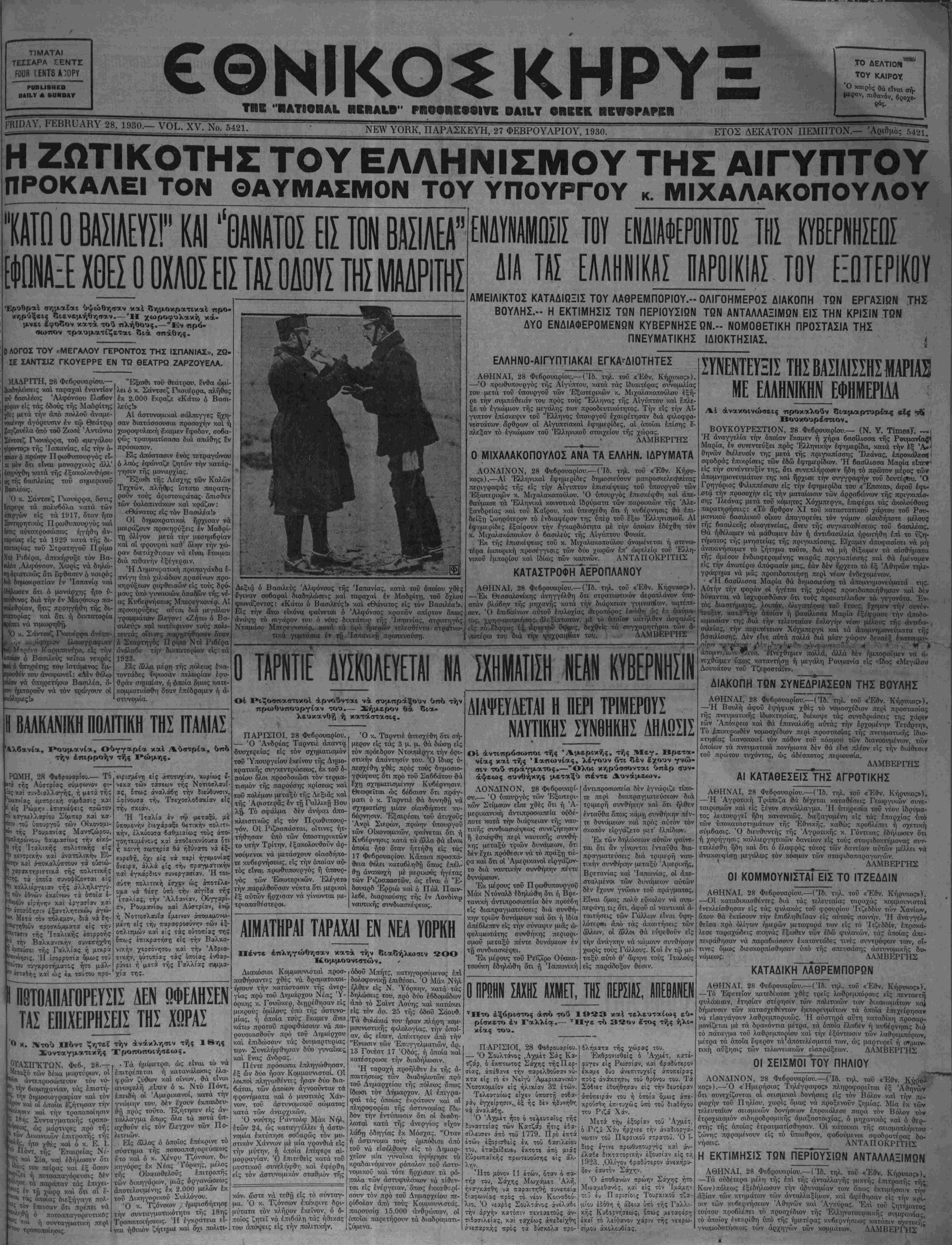 ΡΚΙΡΑΥ, ΡΕΒΚυΑΚΥ 28, 1930.— νθΐΓχν. Νο. 5421.