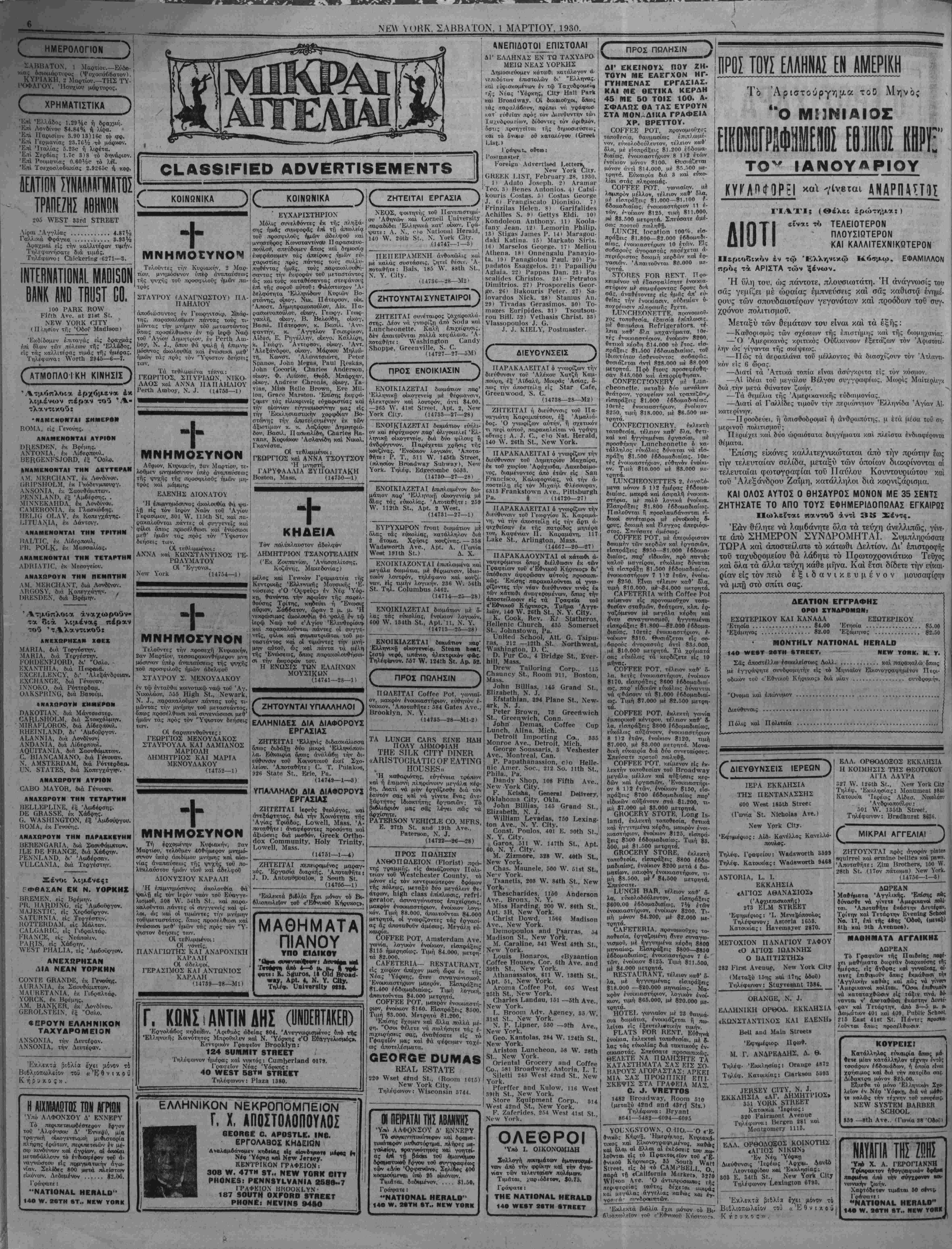 ΝΕν ΥΟΚΚ, ΠΑΡΑΣΚΕΥΗ, 27 ΦΕΒΡΟΥΑΡΙΟΥ, 1930.