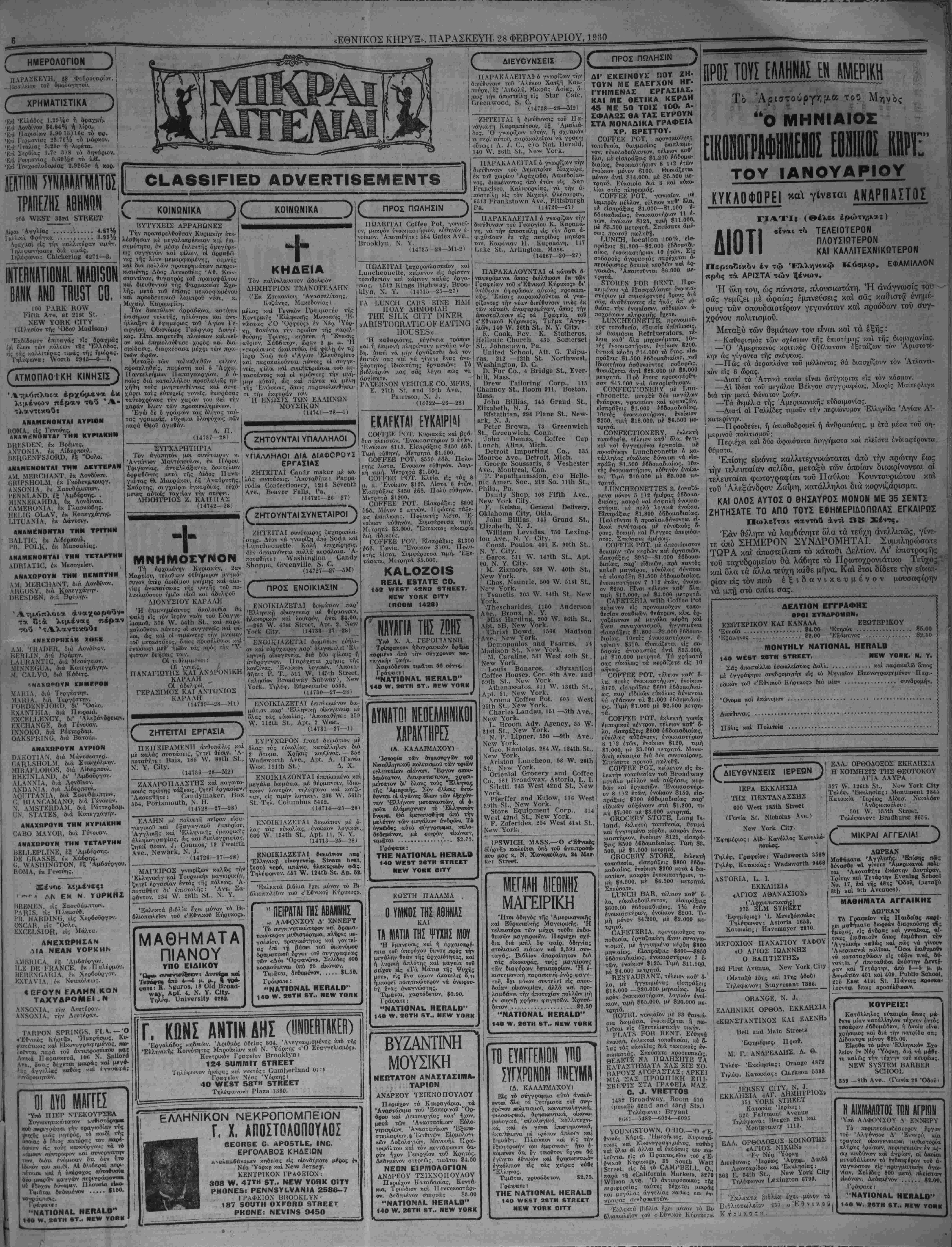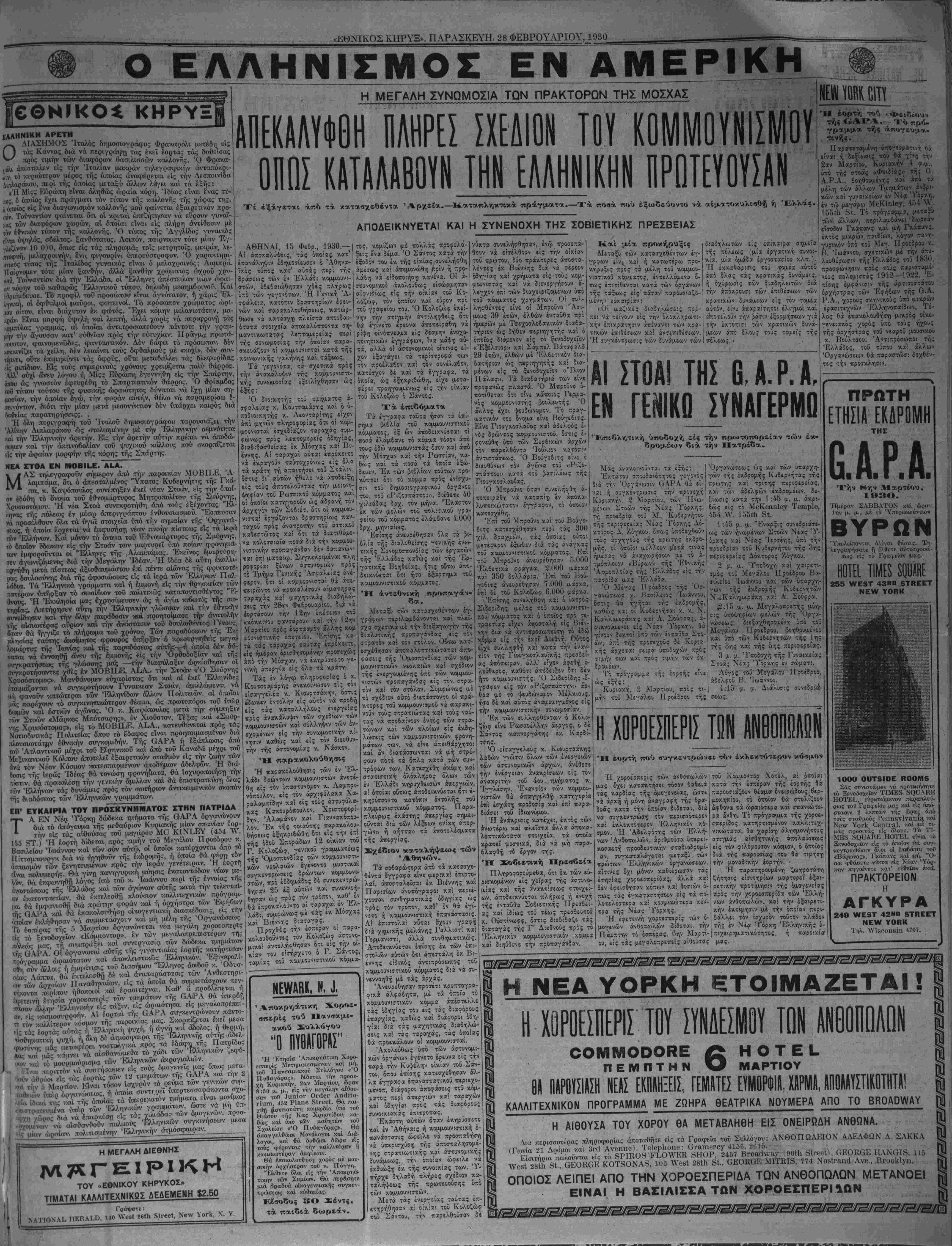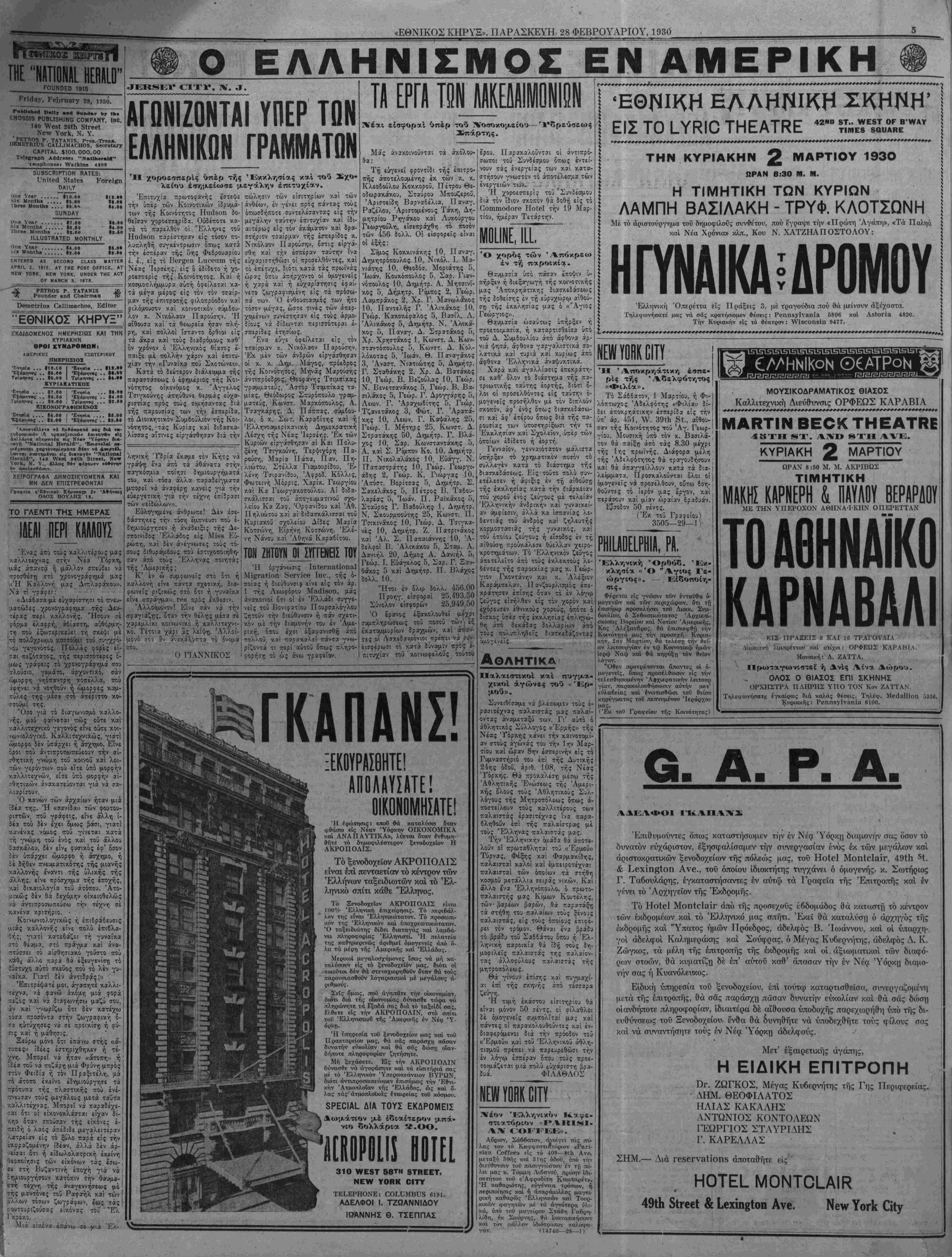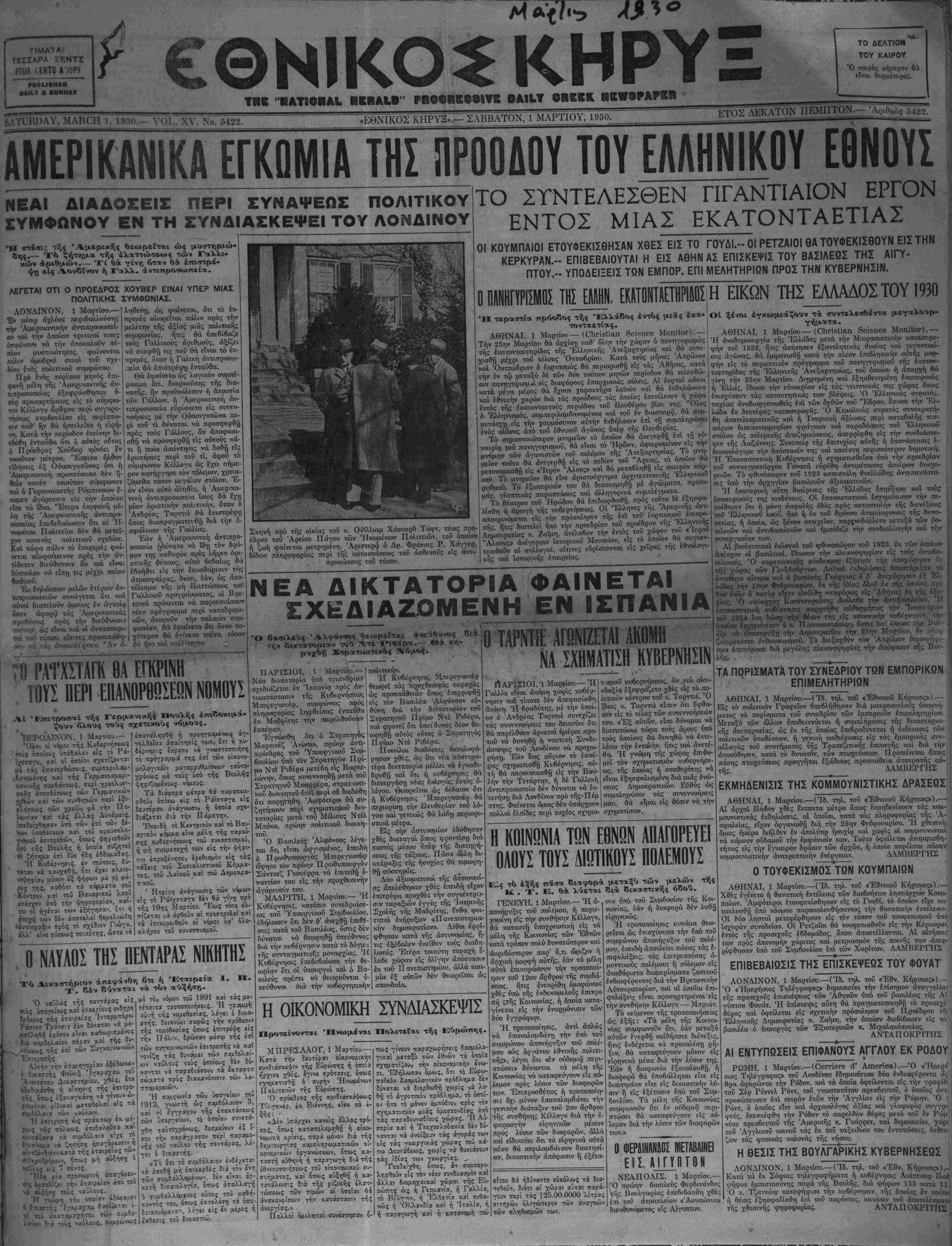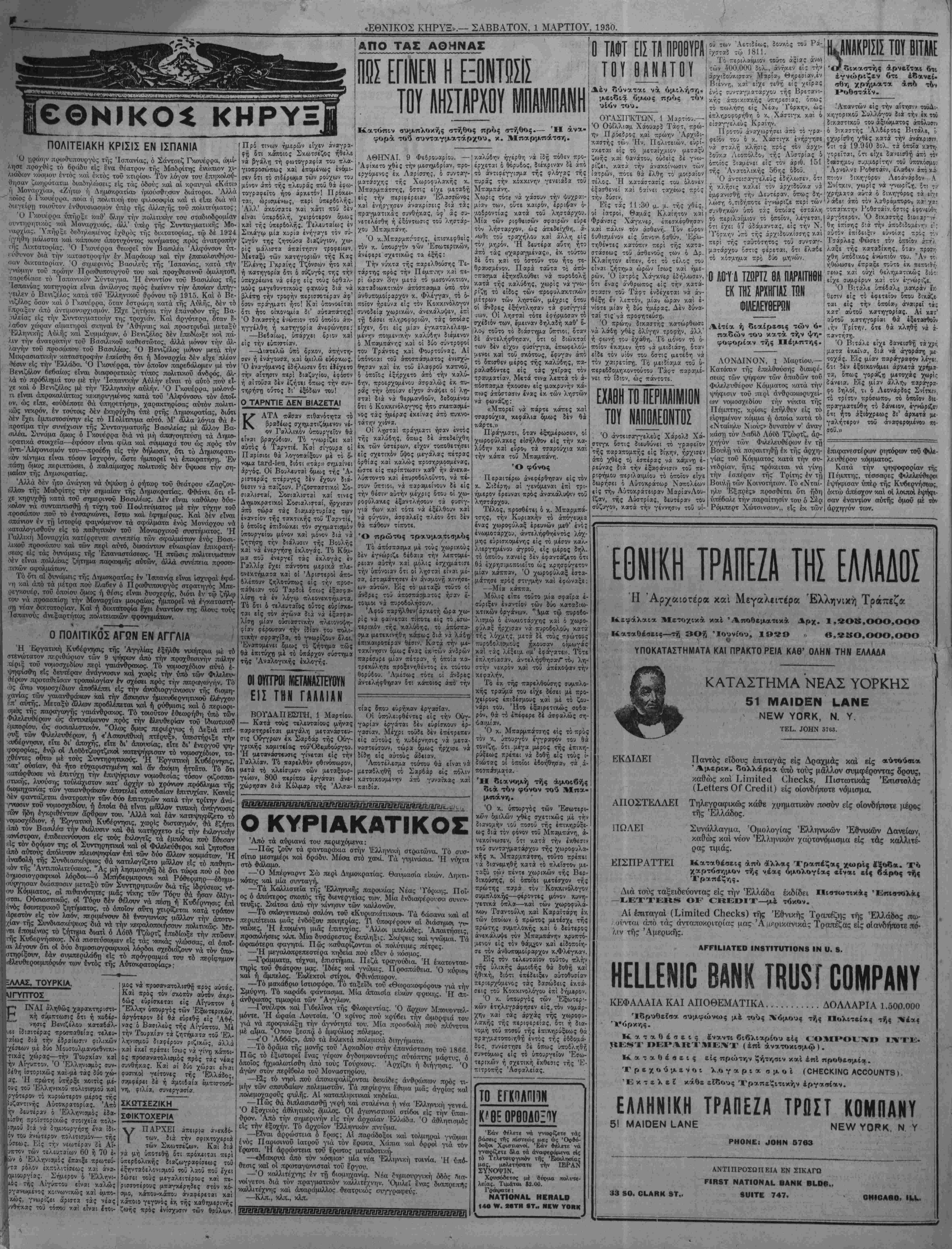 «ΕΘΝΙΚΟΣ ΚΗΡΥΞ».— ΣΑΒΒΑΤΟΝ, 1 ΜΑΡΤΙΟΥ, 1930.