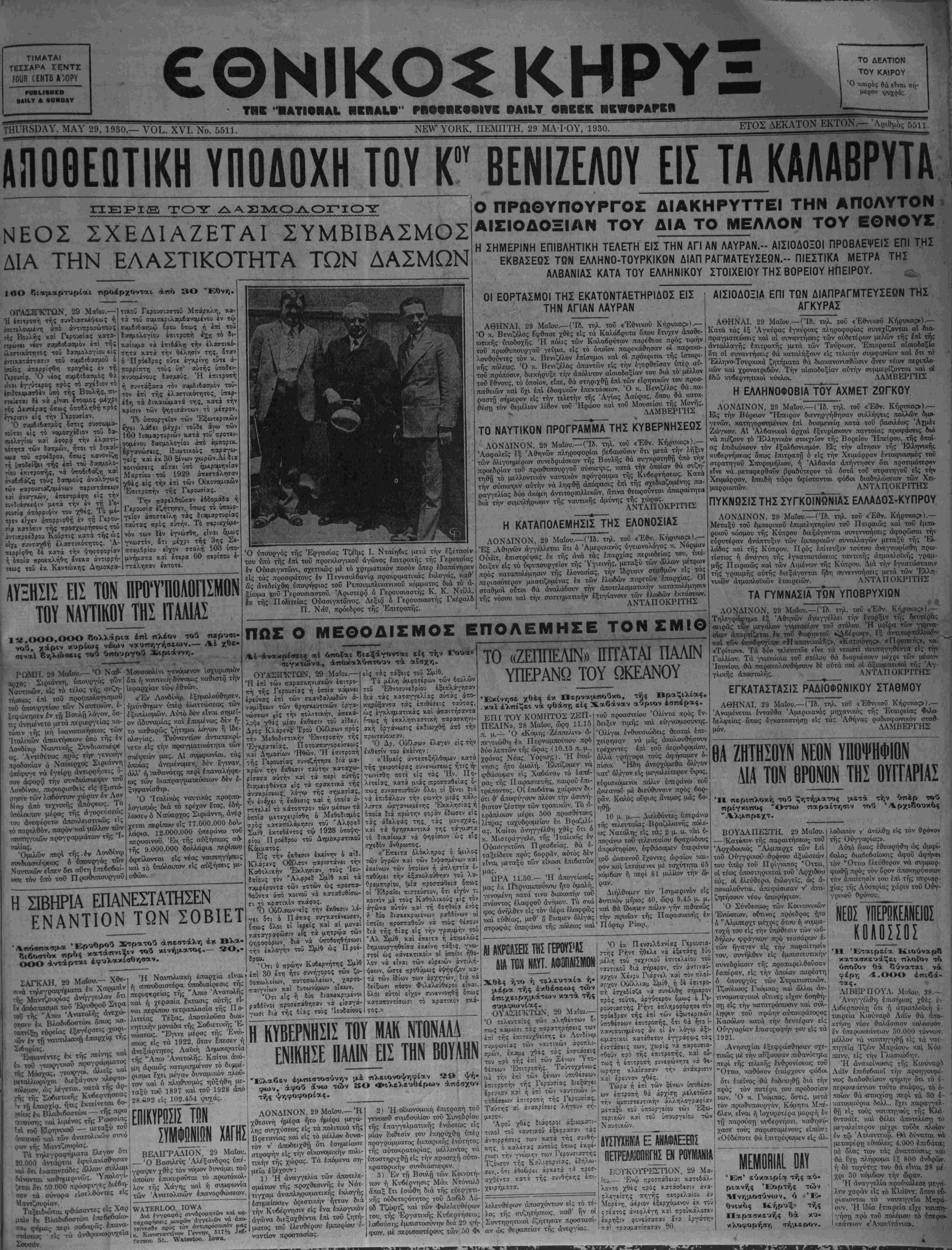 ΝΕν ΥΟΚΚ, ΠΕΜΠΤΗ, 29 ΜΑ-Ι-ΟΥ, 1930.