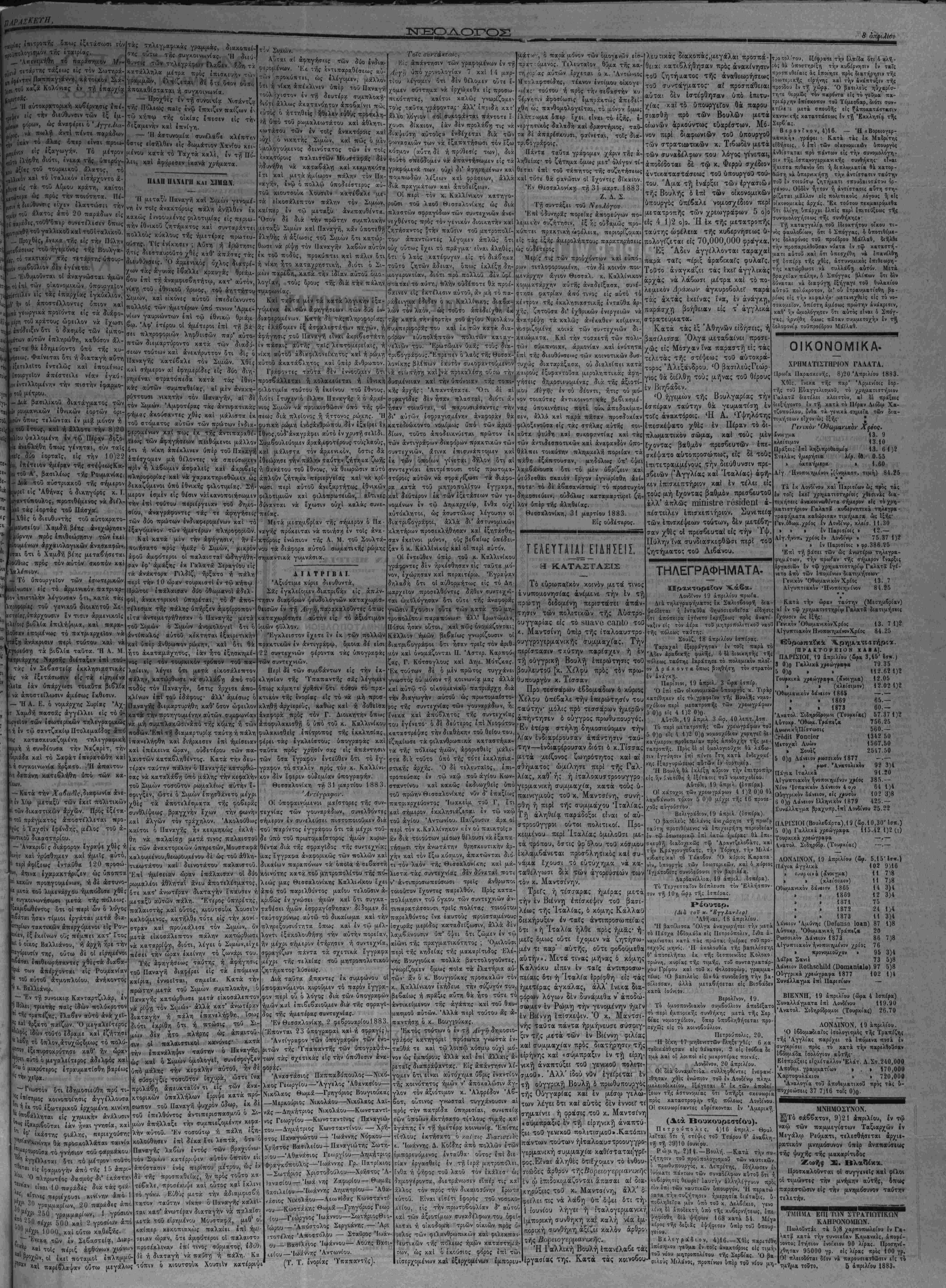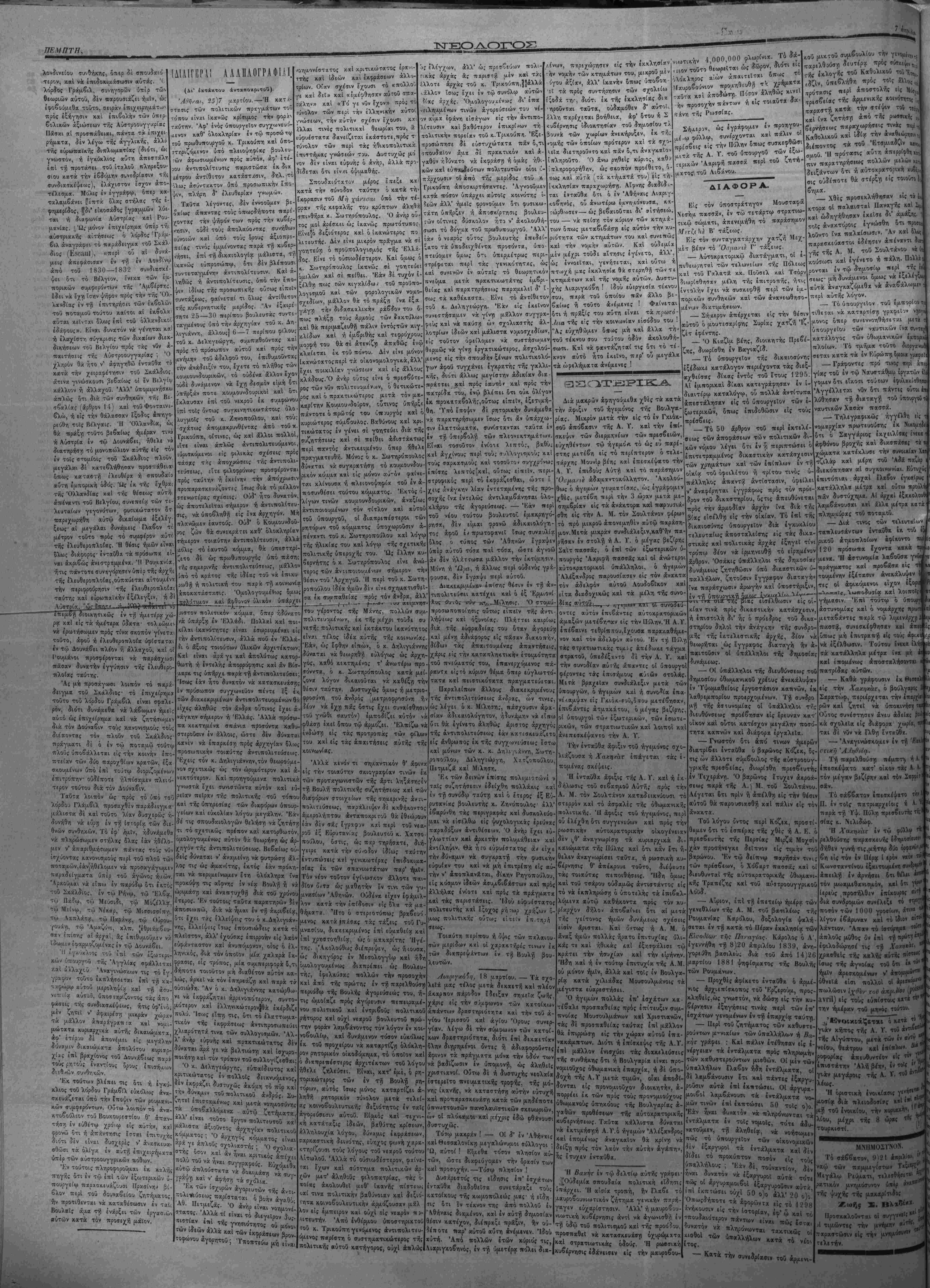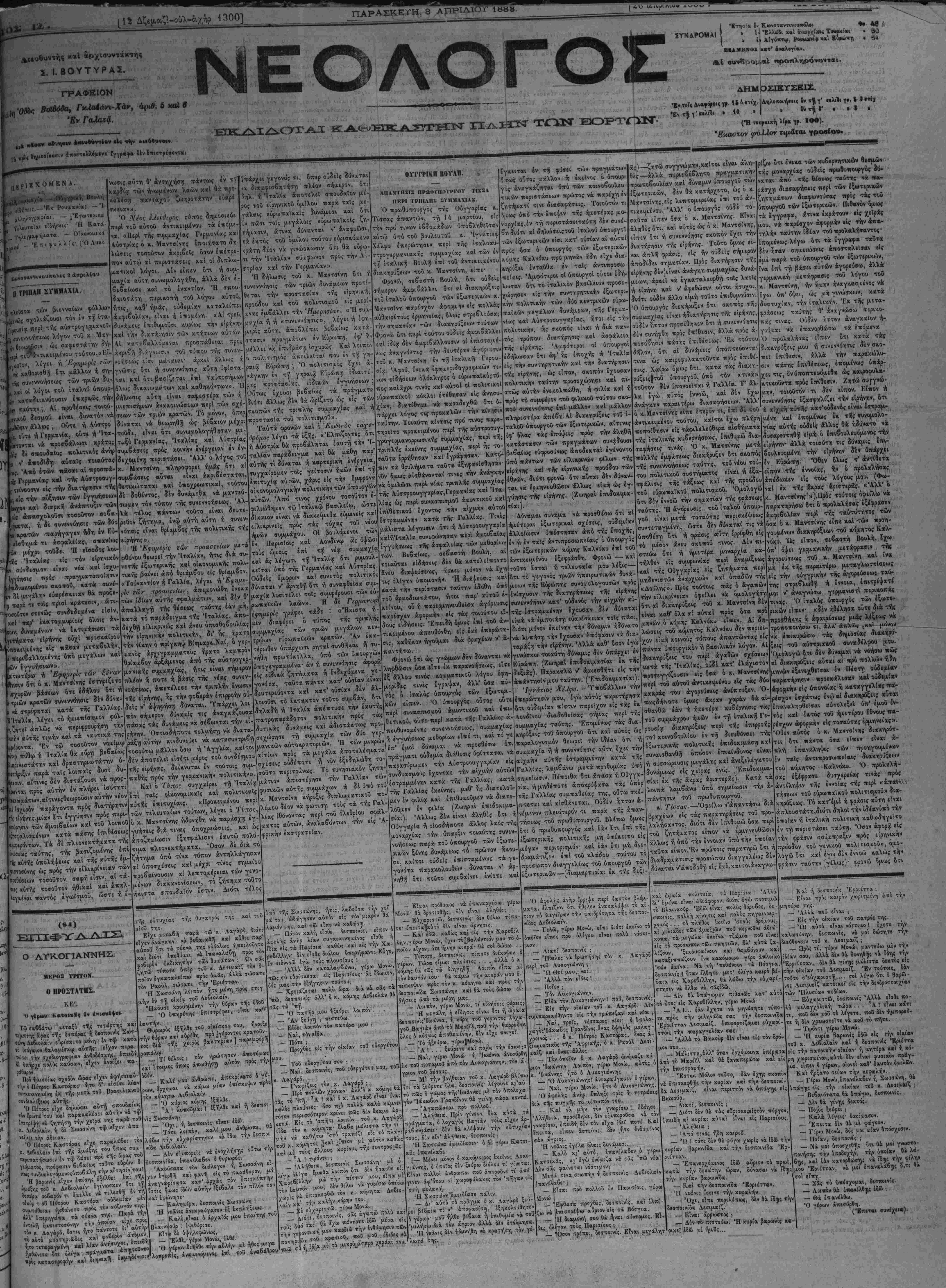 'Κν τοΤ< Δι«·ό·οι< γρ- 114 «χι'χ. Λτ,λουοιή«·ι< Ι» τ·, ν' ·ιλι·ι γ·. | # σ*|χ ί·«β'ν άιιοστελλόμενχ Ιγγ»«·« δεν Ι«ιστρέ·ονται •ντ^Ι' , (*Η τβυρκικη λίε* γ.. 10·). Έχααχυγ ψύΧΧον τψ&τα* γροβίου· ΠΪΡ1ΕΧΟΜΙ£Ν Α. Ρλγγρίχή Βουλή ,οοι ίί5ή1Ε1ί·" |*"1 1'ου!χ*νι'*ί· —Ί- . Τιλιυτ·.ΐ*ι εΐδήσει;· 'Η Κ*τά Τγιλιγεκγή'ματοι. — Οιχονοιχιχϊέ ,Μΐχβί - Έ π ι φ υ λ λ ί ς· (Ό Λυκο ΤΗΙΠΛΠ ΣΓΗΜλΧΙλ. ι -"λίϊστα των βιενναίων φύλλω' ινώς σχολιάζουσι τόν έν τή ίτα ΙΐΊρουσίχ πιρί τή; αύστρογερμ,ανοϊ- ' ΐυνεννοήσιω; λόγον τοΰ κ. Μχν , θίωρώσιν ώ; σαφιστάτην δή- |ιιρί τοΦχντιχεψ,ένου τούτου.«Εϊ- 1'χαϊον, λέγει ή 'Εφημ,ίγϊς τώ) Ι νά καθορισθή ε τι μάλλον ή ση· , ίίς συνεννοήσεω; των τριών δυ- * καί οί λόγοι τοΰ ίταλοΰ υπουρ- ι)!ν χαταδιιχνύουσιν επαρκώς τή ταύτην ; ΑΙ ηροθέαει; τοιού <ιΰ δεαμοΰ είναι δυνατόν νά σιν άλλω; ; Οΰτι ή Αύστρο ) Ι|Η«τονται νά προσβάλωσι κράτος μιΐ; δέ σπουδαϊο; πολιτικό; άνήρ ν' άποδίδη αύται; τοιαύτας (ΐΐ(. Άπό έτών πάσαι αί προσπά- ; Γερμχνίας καΐ τή; Αϋστροουγ- I τιίνοοστν εί; την διατήρησιν τή; 1; την αύξησιν των έγγυήσεων όν καί δΊβρκή ανάπτυξιν των |ίϋς άπασχολοΰσι τοσούτον σοβα ;α«τα, ή δέ συνεννόησι; των δύο ι κρατών παρήγαγεν ηδη έν Εύ- I ίίσθημ.χ τι ασφαλείας, σπανίως ών μέχρι τοΰδε. Ή εΐσοδο; λοι- ίς Ιταλίας είς τόν είρηνικό σύνδεσμον είναι νία χαί ίσχυ- 'ινγύησις προ; πραγματοποίησιν ι ίιηα'νωκομ,ίνοΐ) σχοιτοΰ, κατά συνέ- Κν δι υ,ι^χλτ,ν εύαρέαχειαν θά πράξε¬ ι τε τοίς τρισί κράτίσιν, άτι- Γοσοΰτον στενώς συνδ*εδεμένα εισίν, χκι παρ' έκχτομμυρίοις δλοις άν- ^ «ών, δυναμένων ν« έκτιμήσωσι τα είρήνης ουχί προσκαίρου ιΐηοκειμ,ένη; εί; πασάν ί περιβ*λλομ.ίνη; υπό μεγάλων καί ρών έγγυήσεων». χτωτέρω ή ΕψημιςΙς τώΐ ζί>·ύ>τ