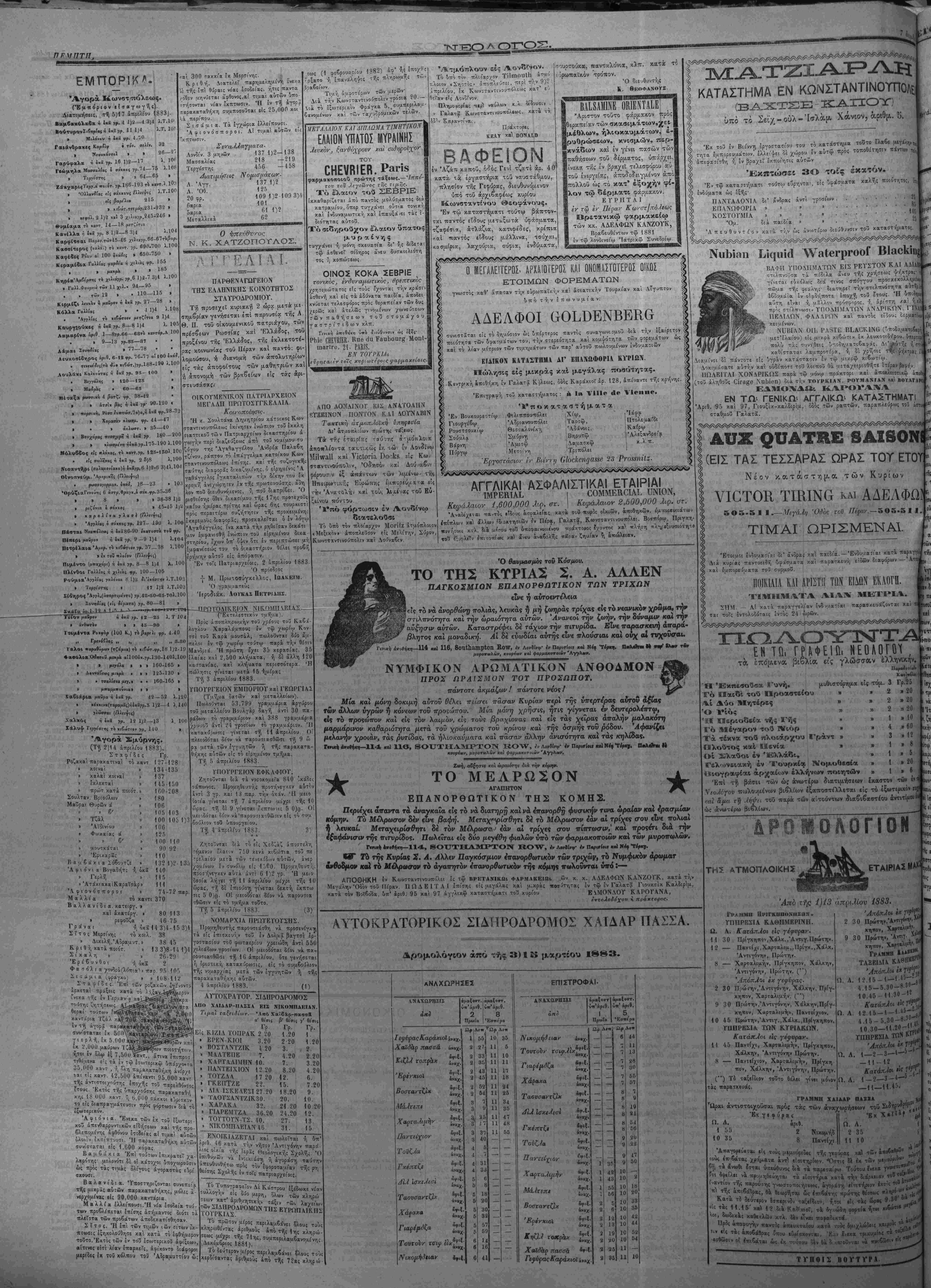 <&ναχ.' «"«Χ· 4ν«χ. άναχ άναχ Λι« υ,ρ — β __ ___ __ — 7 __ 7 __ — 7 _ 7 — — 7 _ __ 8 __ ___ β _ 8 — — β ___ 8 — — 8 — ---- 9 __ 9 1 3Ρ 9 1 42 10 1 43 10 1 55 10 1 56 10 2 5 10 2 6 10 2 12 10 2 13 10 2 19 10 2 20 10 2 25 11 2 35 44 υ 13 28 30 65 57 7 9 19 _ _ 8 21 54 56 20 22 17 50 10 ΕΝ ΤΠ' ΓΈΝΙΚΓΙι ΑΓΓΛΙΚΩ ΚΑΤΑΣΤΗΜΑΤΙ Αριθ. 95 χα'ι 97, Γιουςϊκ-καλδΊρίμ, όδός των ραπτών, παραπλεύρως τού ά« σταθμοϋ1 Γαλατα. ΑΌΧ ρυΑΤΗΕ 8ΑΙ80ΝΙ ^ (ΕΙΣ ΤΑΣ ΤΕΣΣΑΡΑΣ ΩΡΑΣ ΤΟΪ ΕΤΟη Νέον κατάστημ,α των Κυρίων νΐΟΤΟΚ ΤΙΚΙΝ& και ΑΔΕΛΦΩ 5Ο5.Κ11.—ΜεγάΛη Όύος τον Πέραν.—ο0ο·5 Ι 1, ΤΙΜΑΙ ΩΡΙΣΜΕΝΑΙ. ιτκις "Ετοιμα ένζυ;/α-,ίαι δι' ανορα; χαι παιοίβ.—'Ενου;λαϊίαι χατχ παρχγγ Δι» κυρίας π*ντοει8ή υ^ίσματα καϊ παρα?χευή ε'όων Βιοιφορων — Α.ΐϋ| χαί έαπορε'^υατα τοϋ συρμοϋ. ΠΟΙΚΙΑΤΑ ΚΑΙ ΑΡΙΣΤΗ ΤΩΝ ΕΙ_ΩΝ ΕΚΑΟΓΗ. ΧΙΜΪΙΜΑΤΑ ΑΙΑΛί ΜΕΤΡΙΑ. ΣγΊΜ. — Α'. χατα παραγγελίαν ένδι^α-ίαι παρβσ/ευάζονται χ«Ί ται τοίς έντολοϊόταις έντο; 24 ωρών. ΕΝ Τ υ. Γ{ίΦΕΐα· ΝΕΟΛΟΓίΠ , τα, έπό'Αενα βιβλία εις γλώσσαν ελληνικήν, Κ·»]«<1ι Ή. Έκπεαουοα Γυνή, μυθιστο'ρημα είς τόμ. 3 Γρ.25 Γό Οαιδί τού Ιΐροαοτείου » » 2 » 20 %.1 Αύο Ιϋητέρες » » 2 » 20 Ο 1·Ίός » » 2 η 20 'ΪΙ Ηεριοδεία τί,ς Γής » » 1 » 10 Γό Μέγαρον τού Ι¥ιορ » » 4 »60 Χά τέκνα τού «λοιάρχου Γράντ » » 3 » 12 ίΐλοθτος καί «Ιενίχ » » 1 » 8 Οί Σλαυοι έν Ί&λλάδι, » 1 » δ Γελ'υνειακή έν Τουρκία ΐνομοθεοία » 1 » 20 Οιογραφίαι άρχα£ο>ν έλλήνων ποιητων » 1 » 6